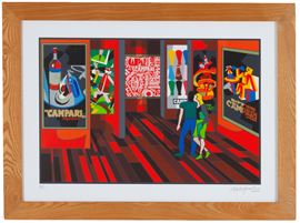 Serigrafia polimaterica su carta raffigurante "CAMPARI". Esemplare HC in basso a sinistra. Firmata in basso a destra. In cornice.