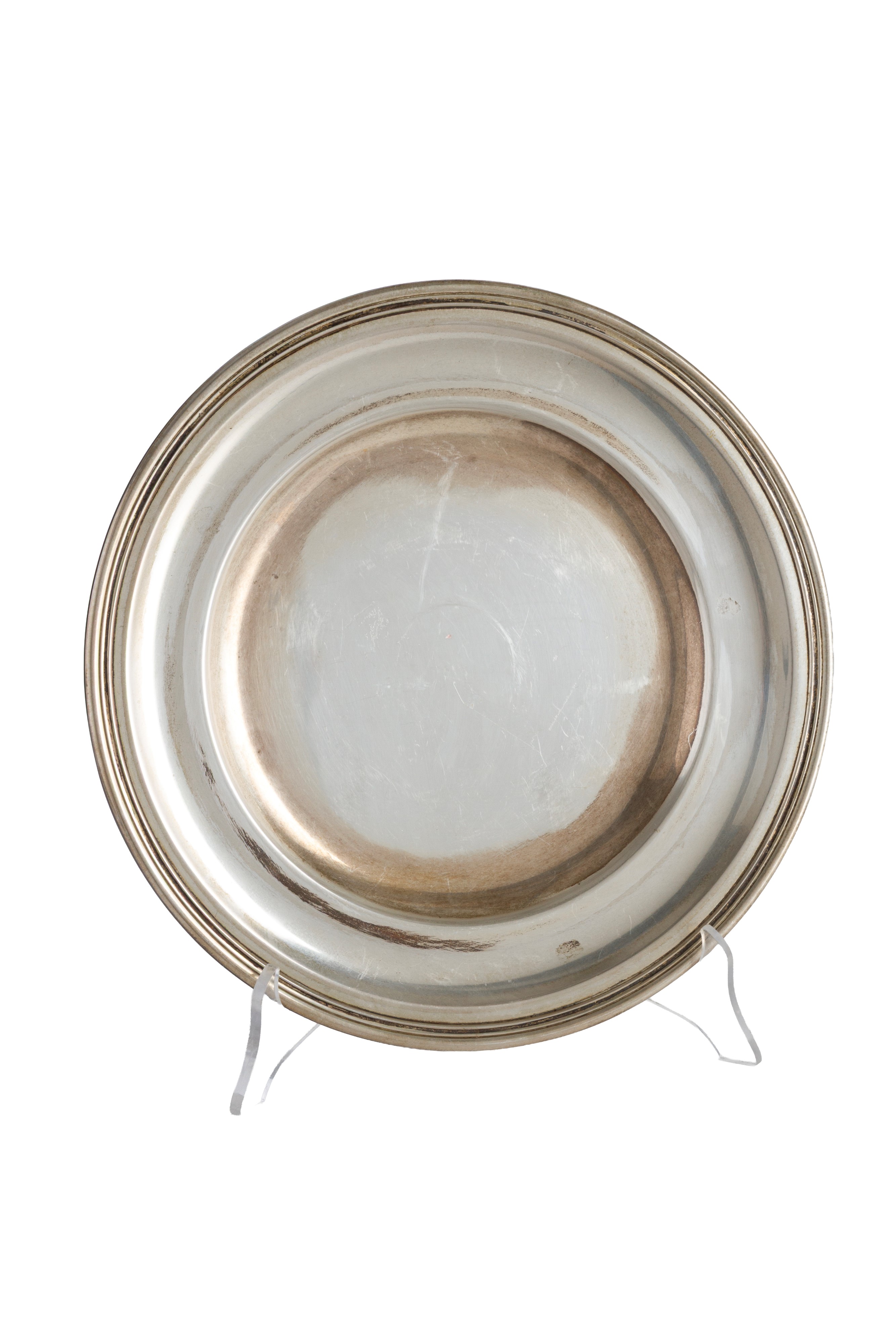 Piatto in argento 800, gr. 450 ca. XX secolo.