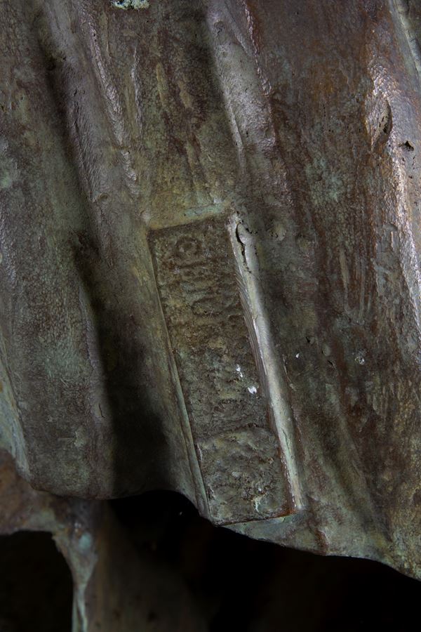 Scultura in bronzo intitolata "VECCHIO" alla base. Con marchio della fonderia CHIURAZZI, Napoli sul retro.