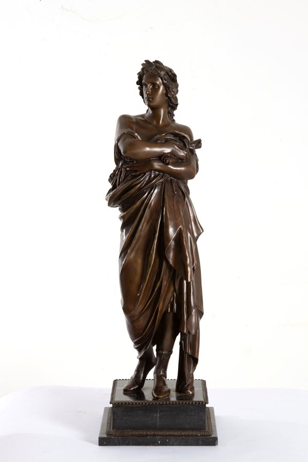 Scultura in bronzo raffigurante "VIRGILIO". Base in marmo nero. Fine XIX secolo.