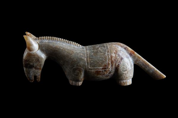 Scultura in giada raffigurante "CAVALLO". Cina.