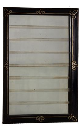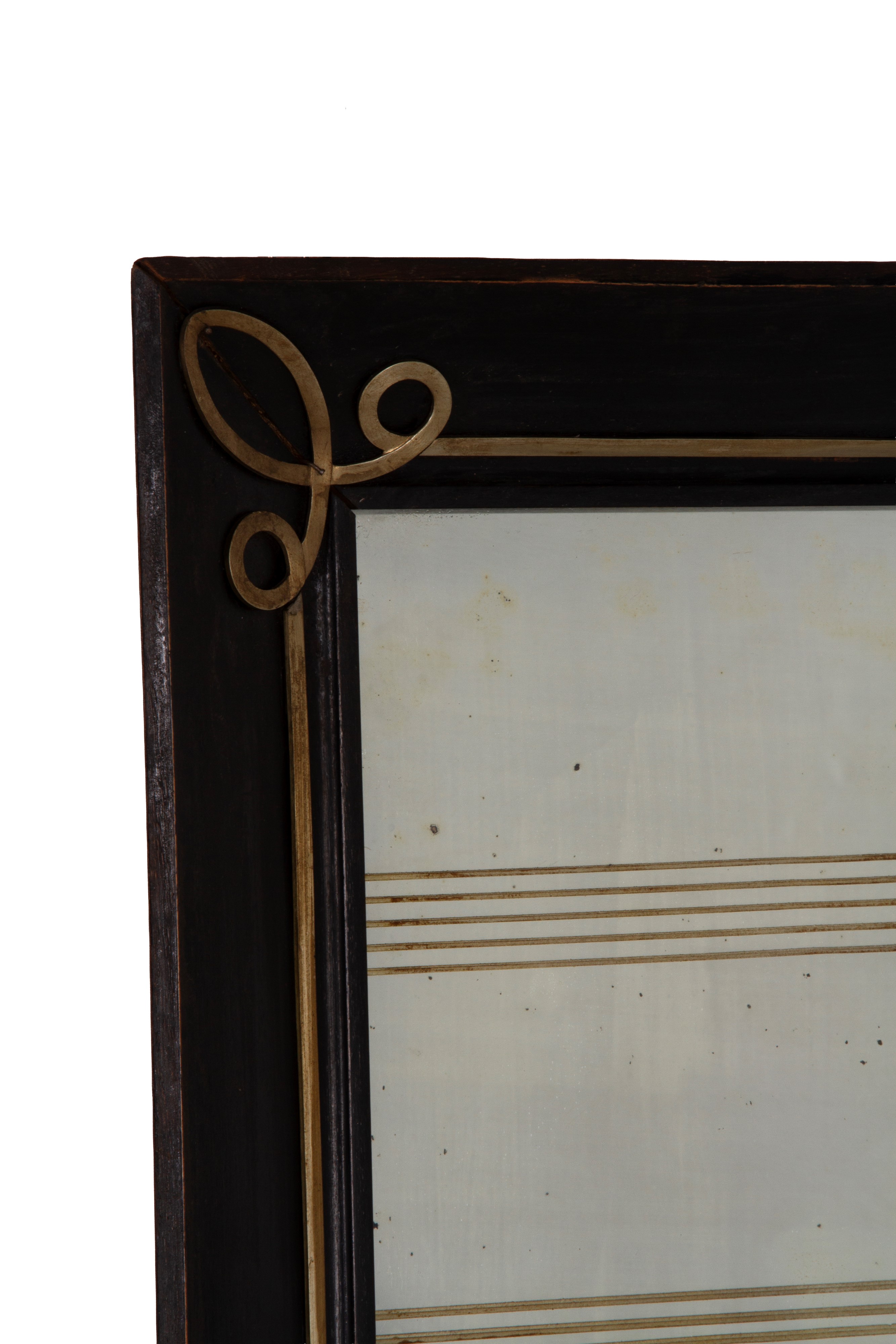 Specchiera in legno ebanizzato con profili in ferro. Inizi XX secolo. Difetti e mancanze.