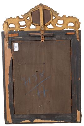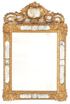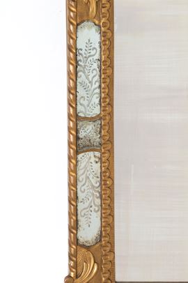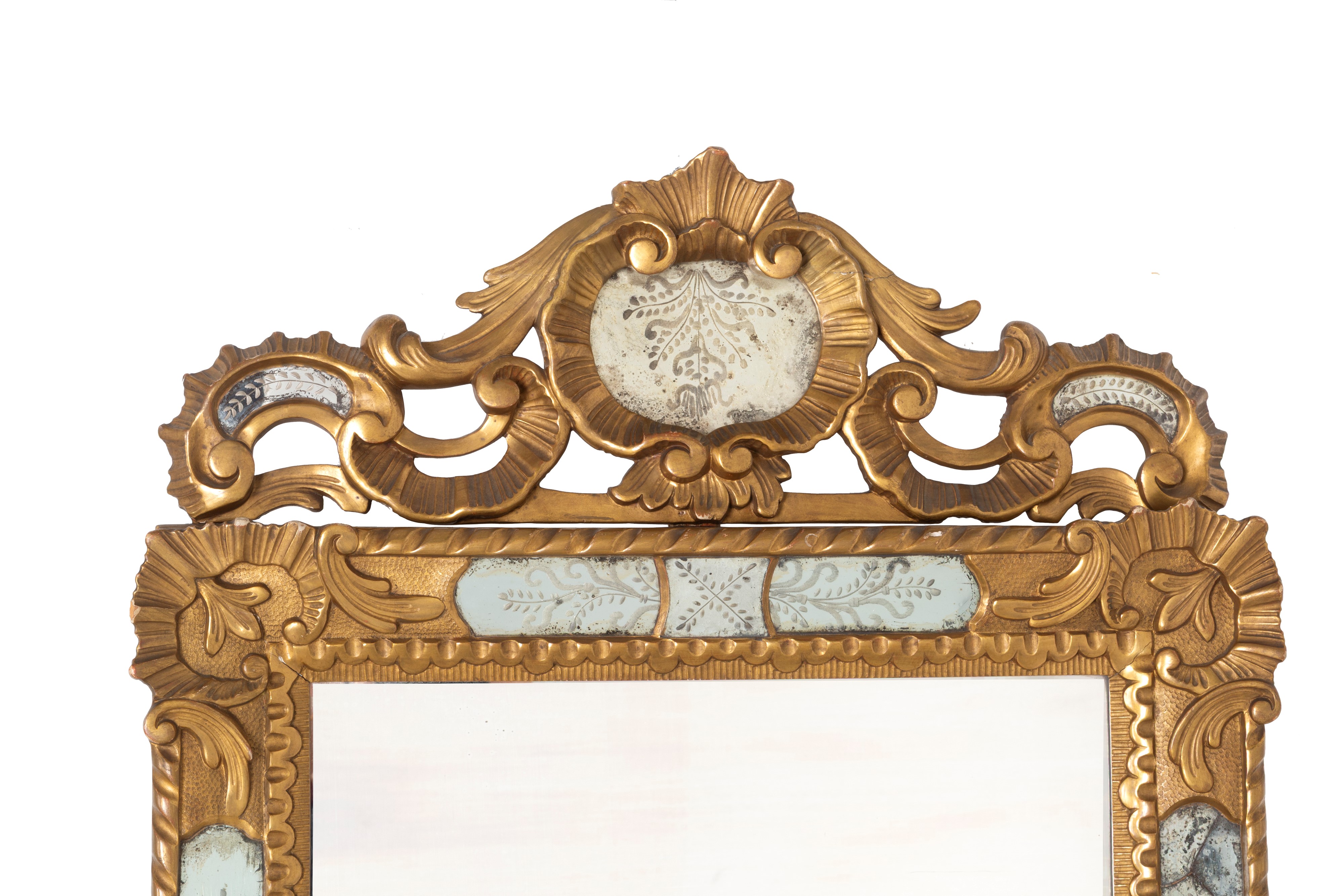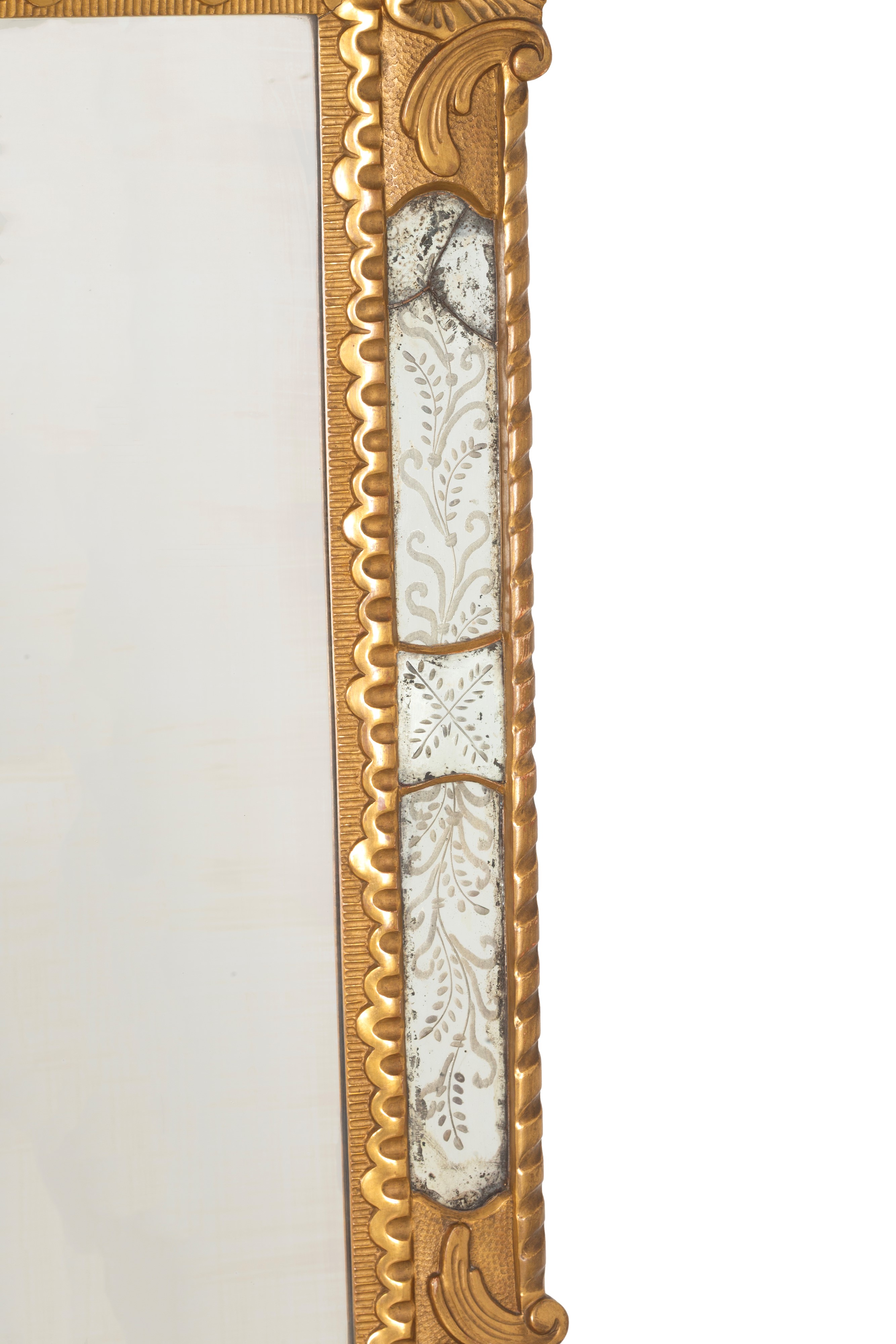Specchiera in legno intagliato e dorato con inserti in vetro molato. XX secolo. Lievi difetti.