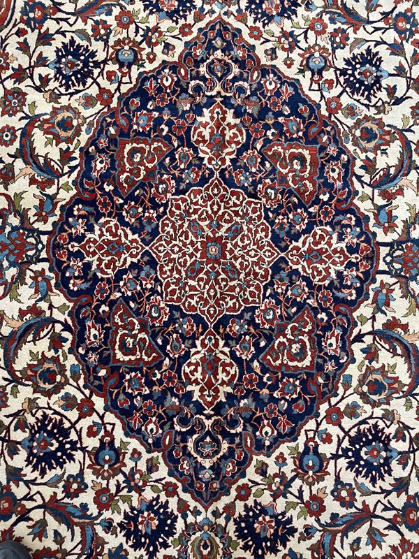 Tappeto Isfahan Zafferani qualità extra fine. Persia. Circa 1900. Eccellente stato di conservazione, full pile, no aree consumate.