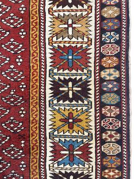 Tappeto Kuba. Caucaso. Circa 1900.Eccellente stato di conservazione, campo in vello, senza restauri o aree danneggiate, quattro lati perimetrali originali
