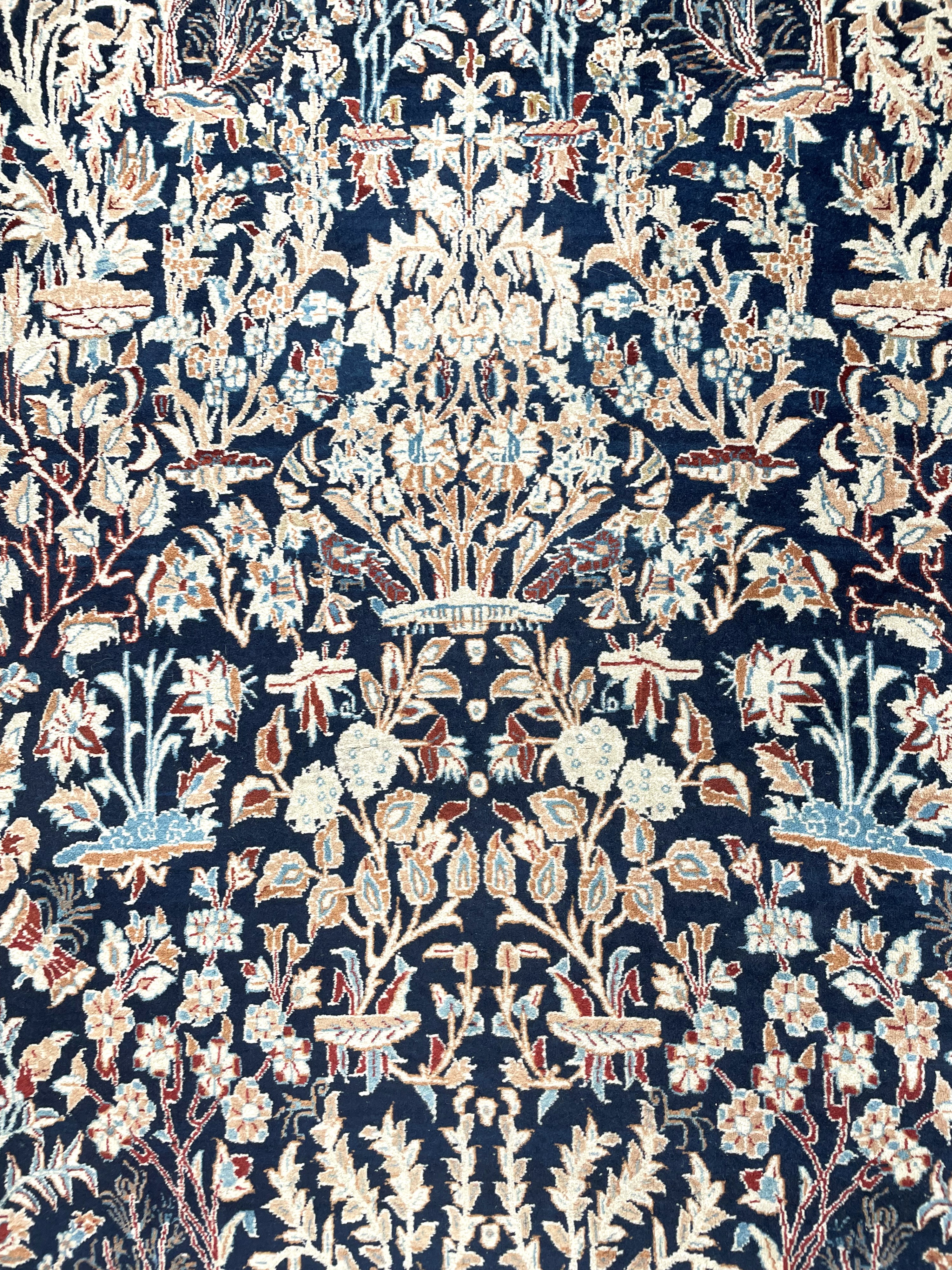 Tappeto Nain in lana e seta, qualità fine. Persia. Inizi XX secolo. Full pile, senza restauri o aree danneggiate, quattro lati originali, necessita un lavaggio.