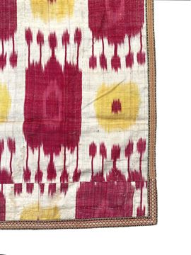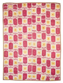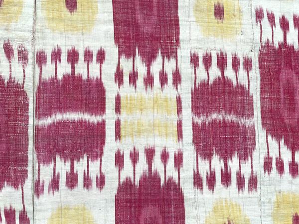 Tessuto Ikat disegno a melograni in seta. Uzbekistan