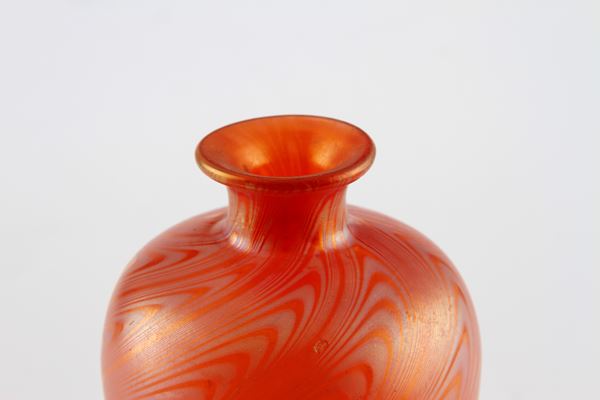 Vasetto in vetro di Murano rosa iridescente. Lievi difetti.