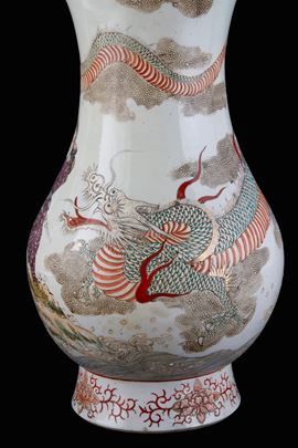 Vaso in porcellana Imari raffigurante "GUERRIERO E DRAGHI". Giappone. Difetti e restauri.