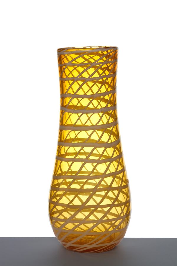 Vaso della sera Decoro a Rete in vetro di Murano. VENINI & C. 1948. Pubblicato in "Venini Glass: Its History, Artists and Techiniques, ed. Deboni e in "Fulvio Bianconi alla Venini", ed. Skira, 2015, pag. 150.