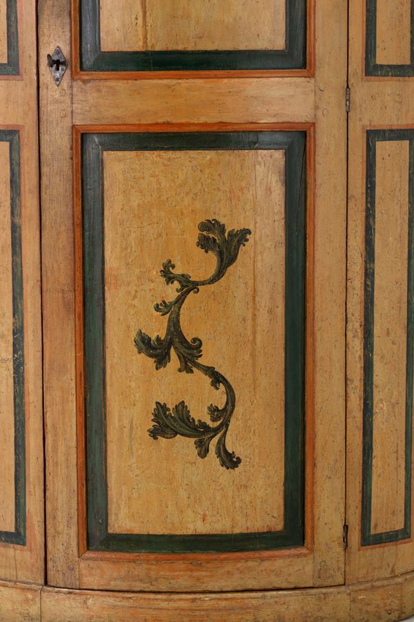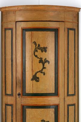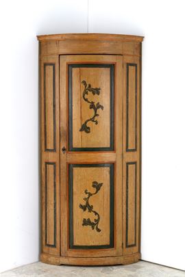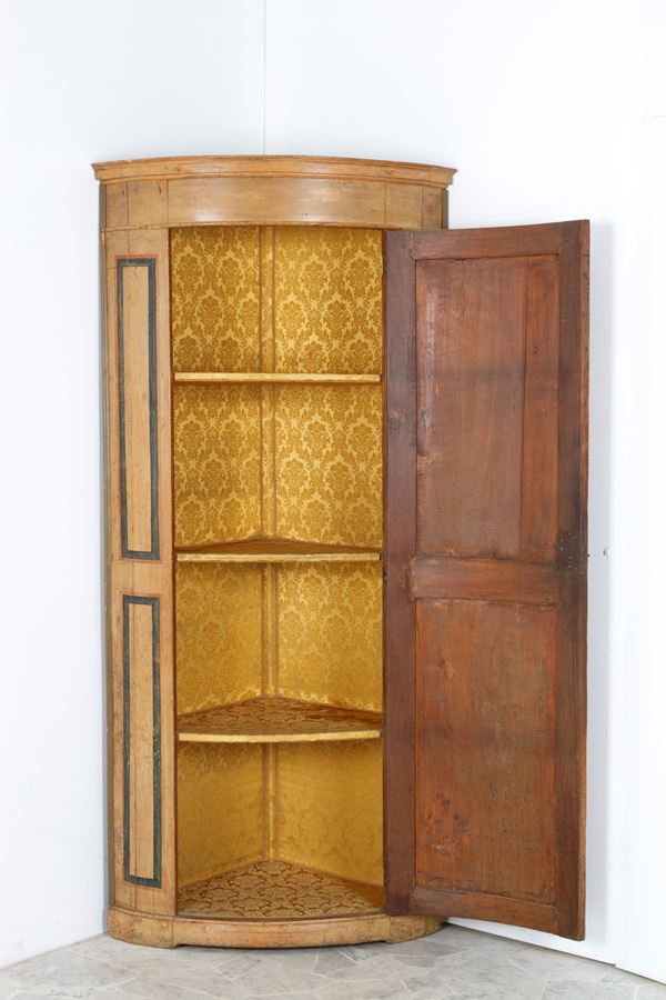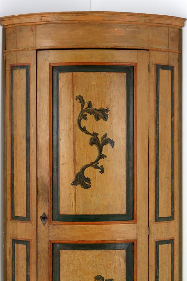 Cantonale in legno dipinto. XVIII secolo ma con rifacimenti. Lievi difetti.