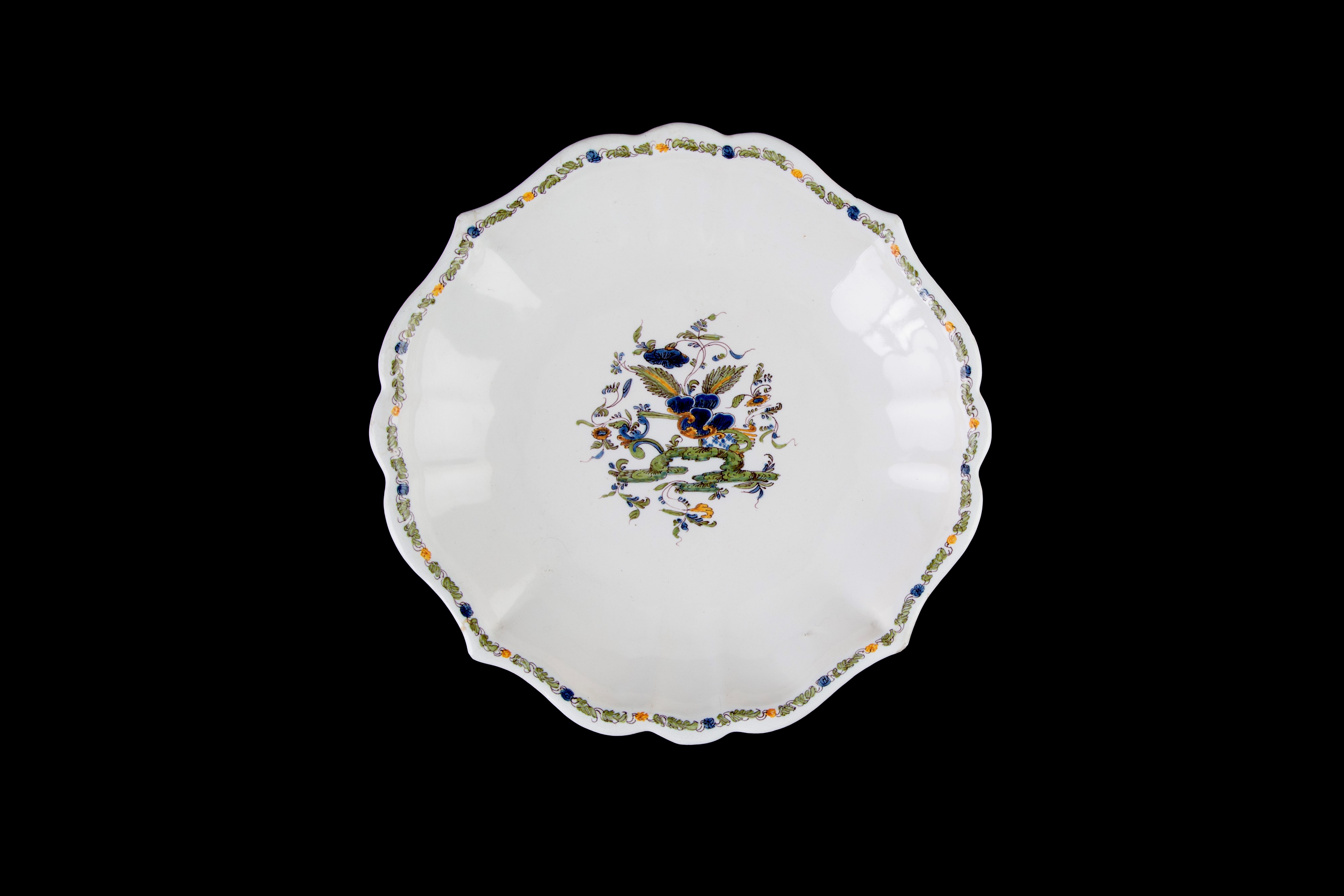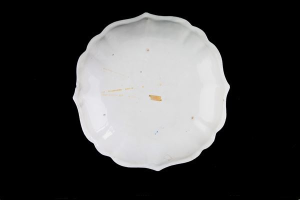 Centrotavola in maiolica con decori floreali al centro. Manifattura ANTONIBON, Nove di Bassano. XVIII secolo. Difetti.