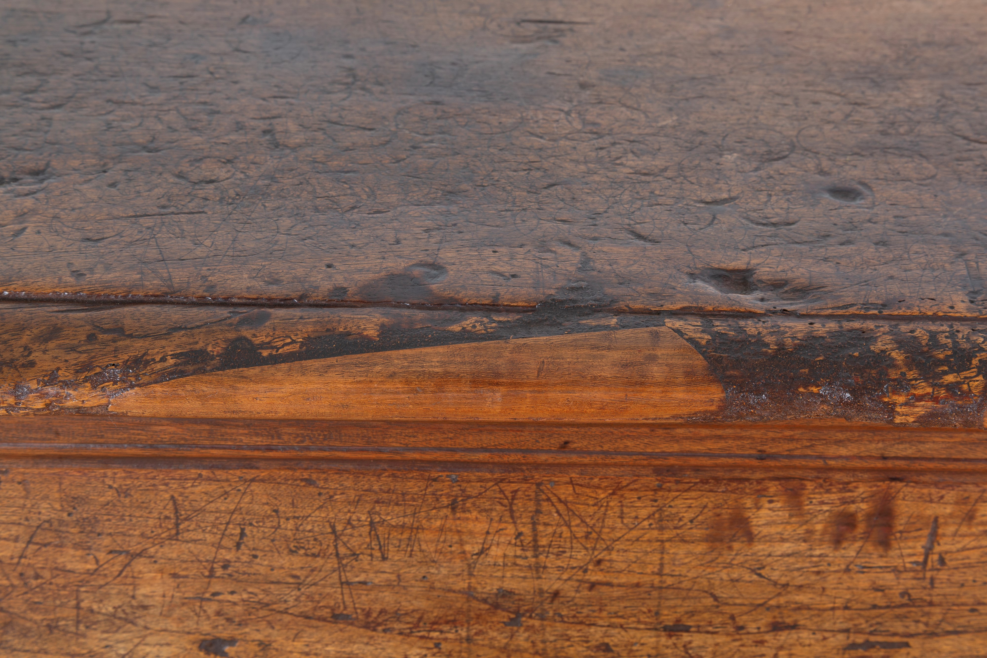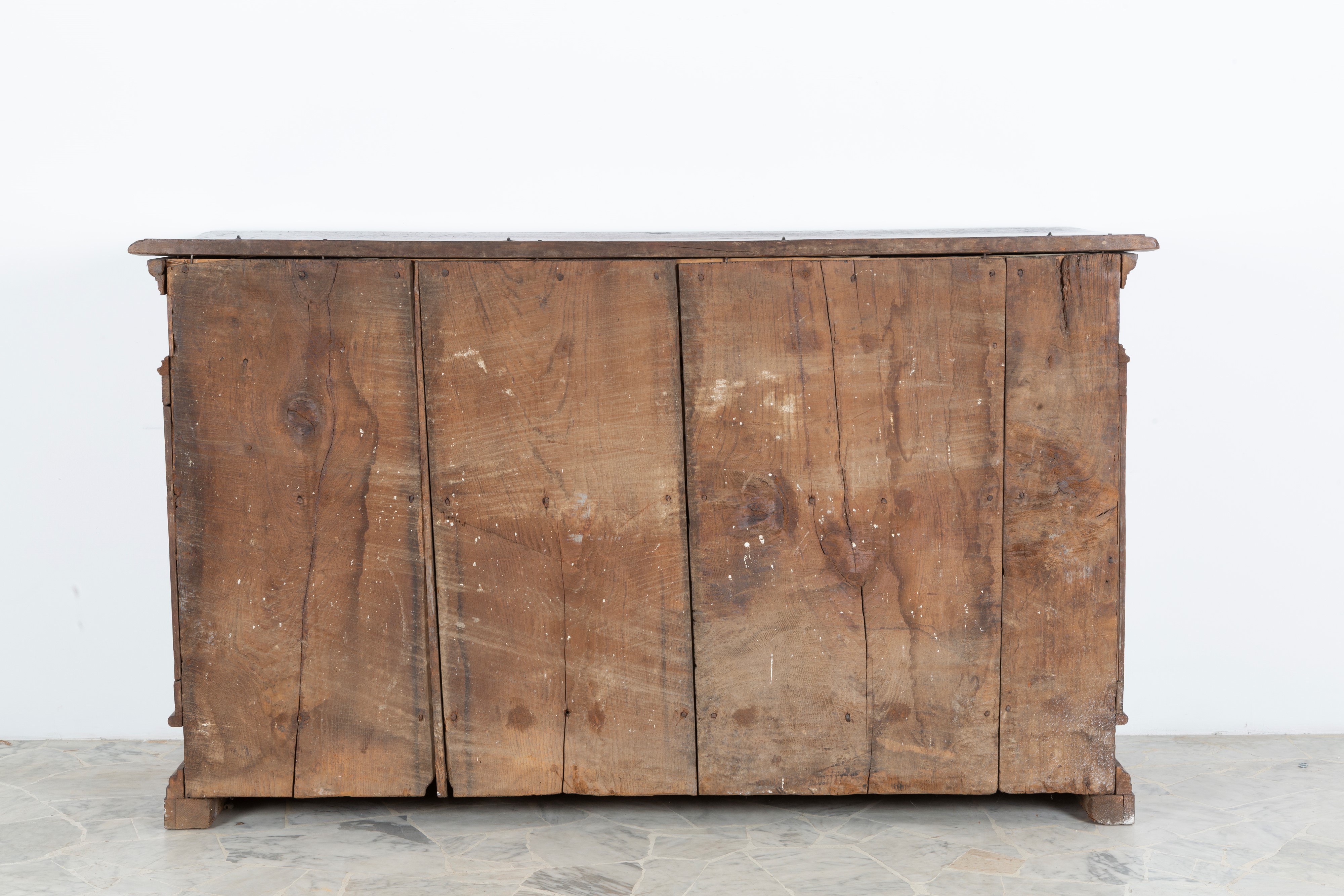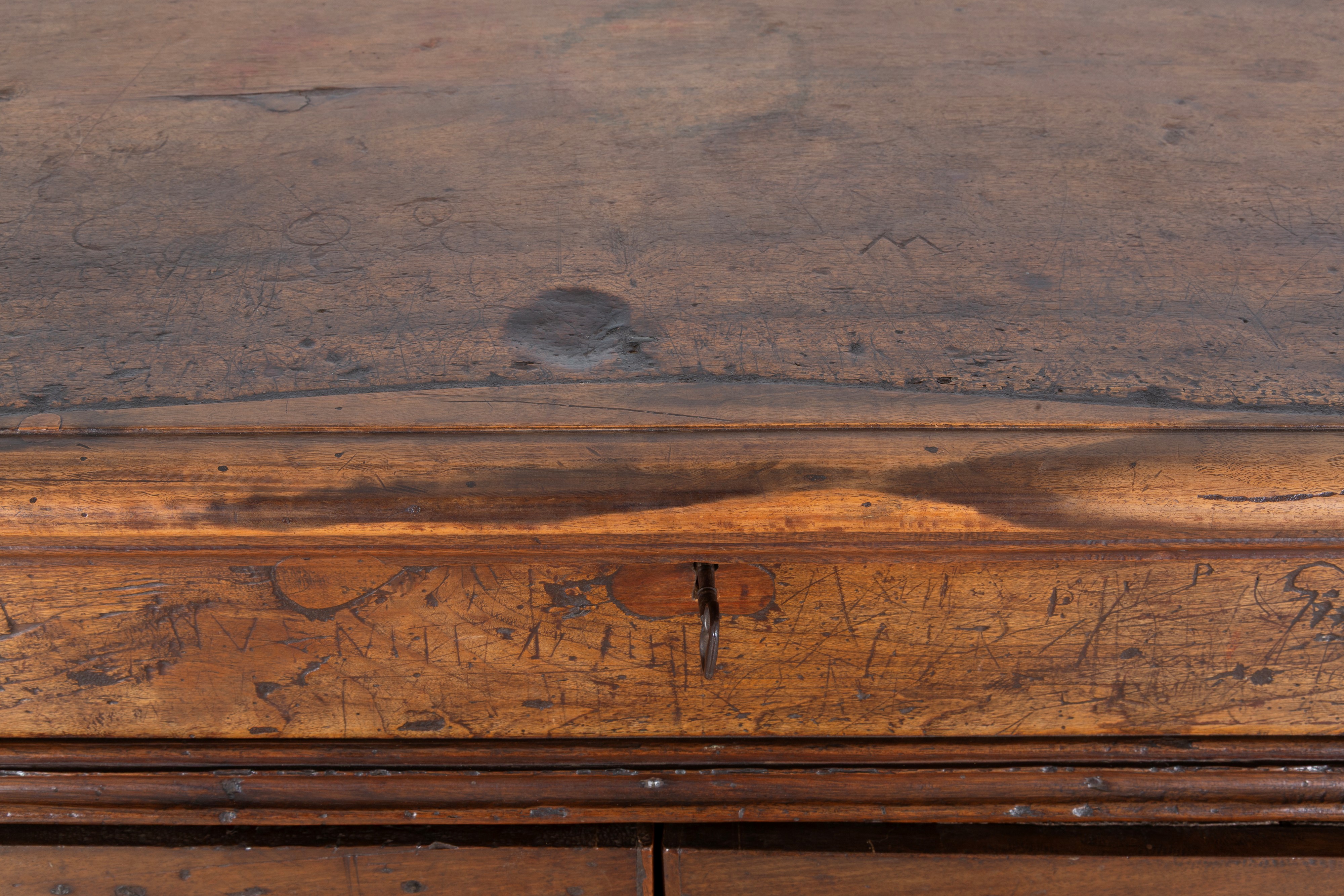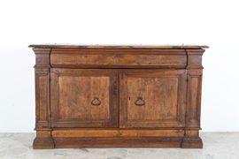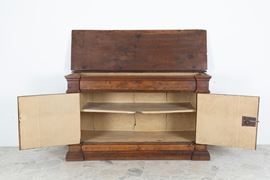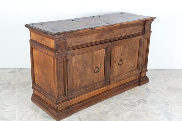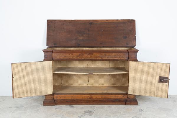 Credenza in noce a due sportelli con piano apribile. Toscana. XVII secolo. Difetti.