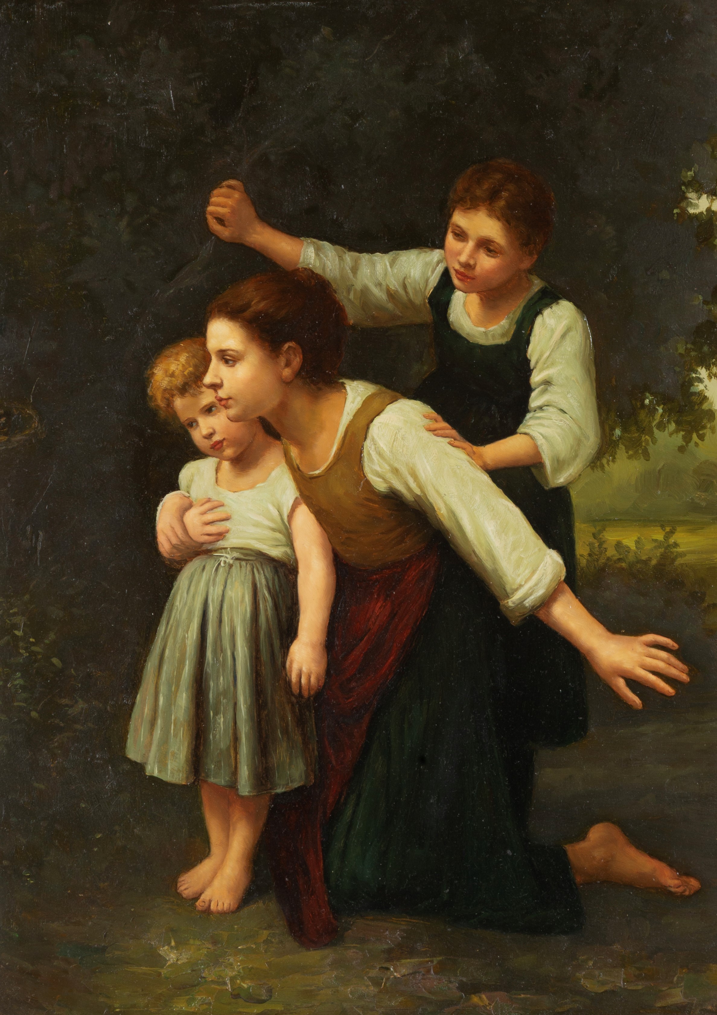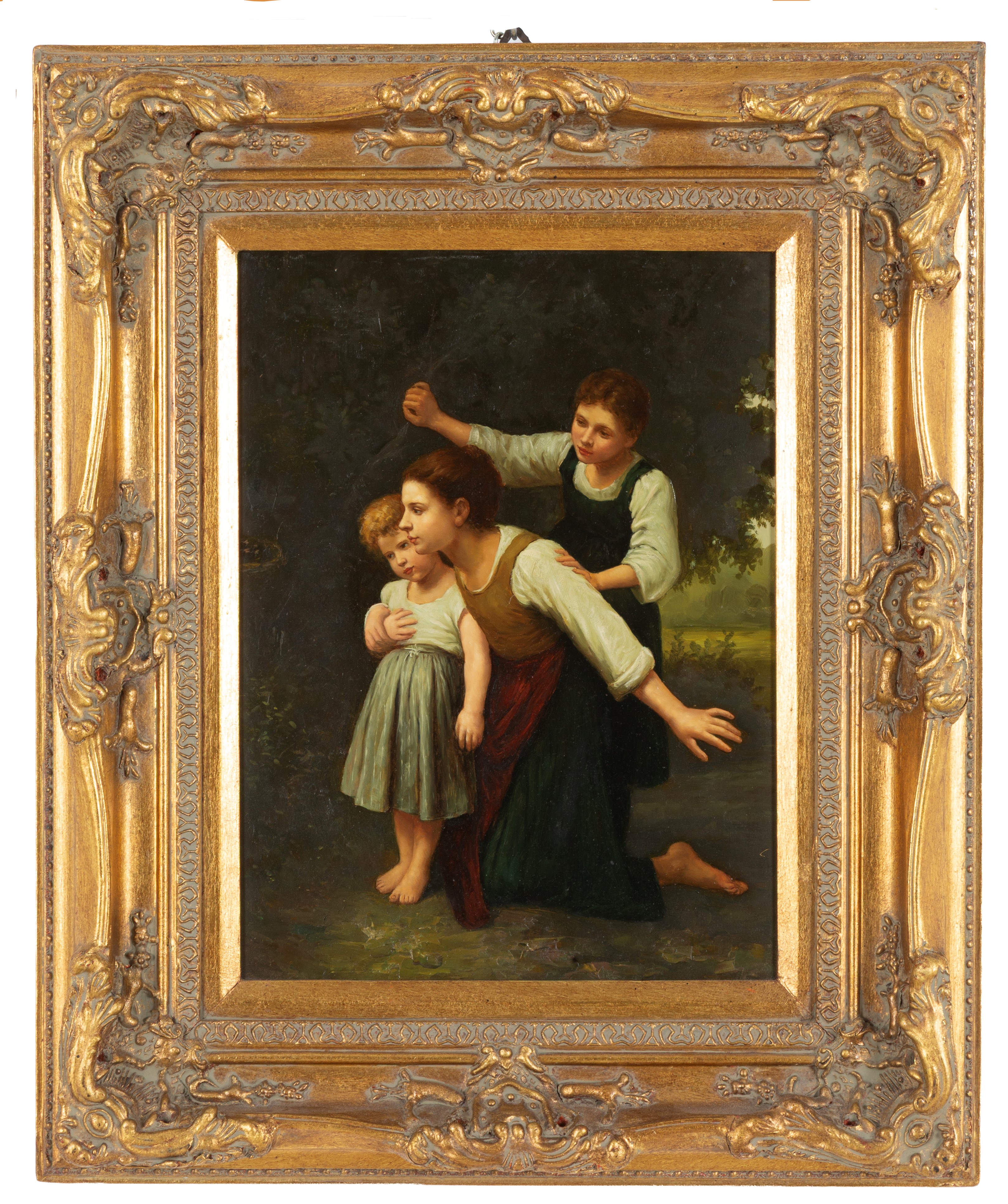 Dipinto olio su tavola raffigurante "GIOVINCELLE". XX secolo. In cornice.