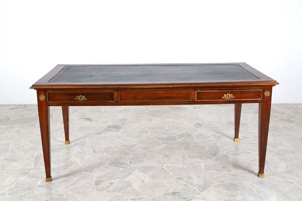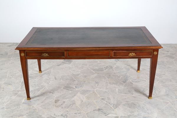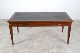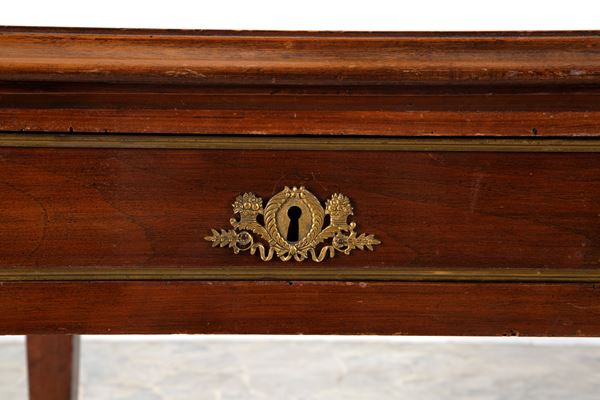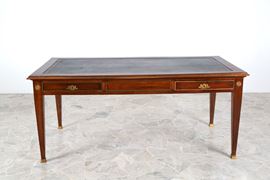 Diplomatica lastronata in legno di mogano con piano in pelle e finiture in ottone. Fine XVIII secolo. Lievi difetti.