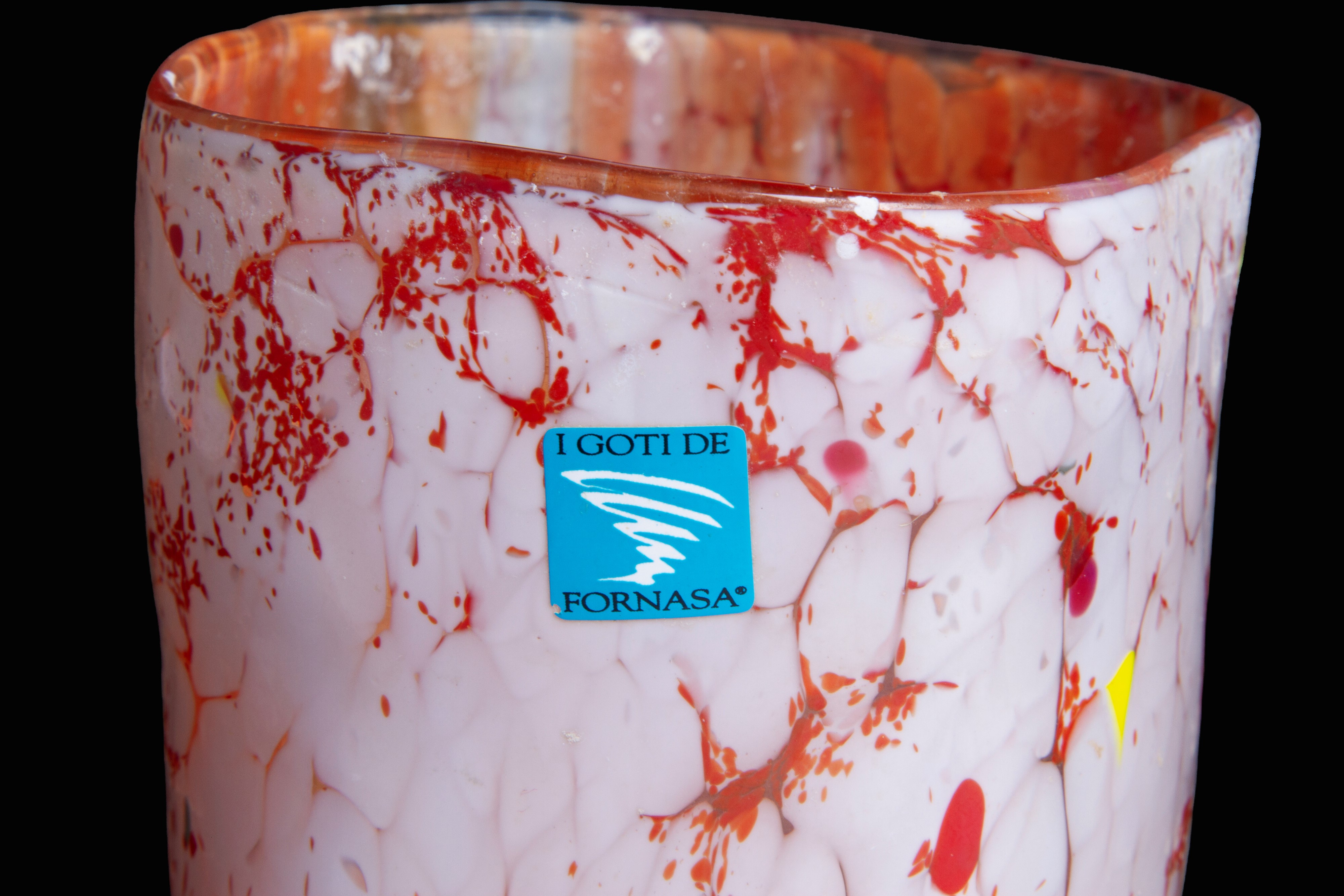 Goto de Fornasa in vetro policromo. BAROVIER & TOSO. Firmato sul fondo e con etichetta sul lato.