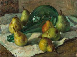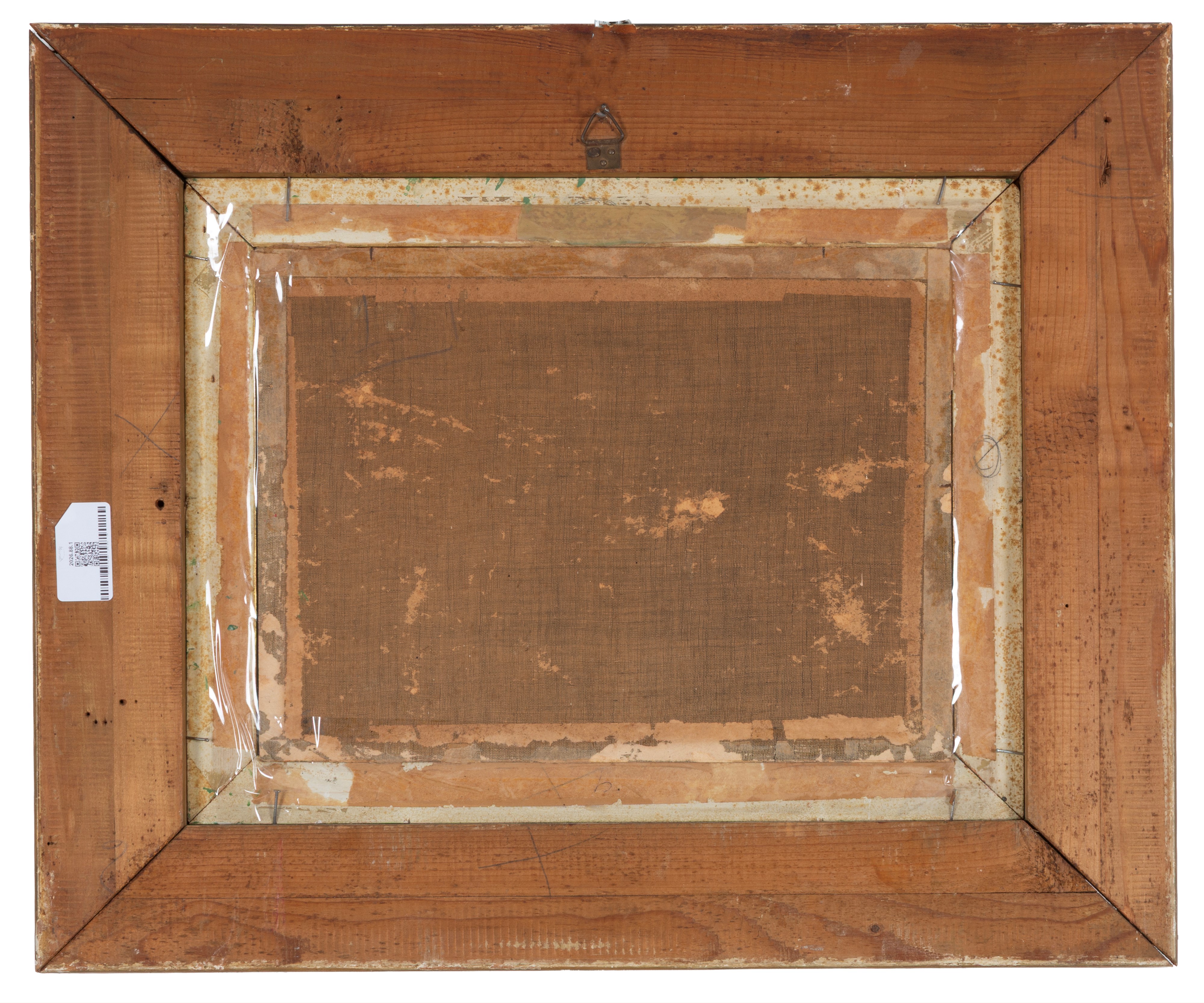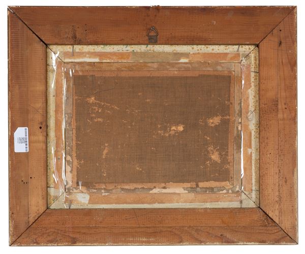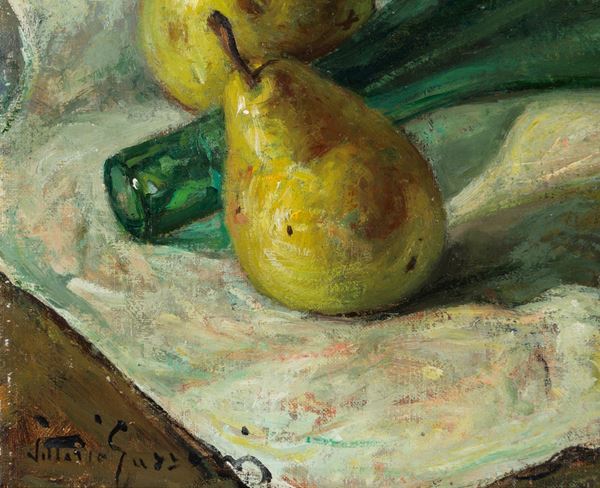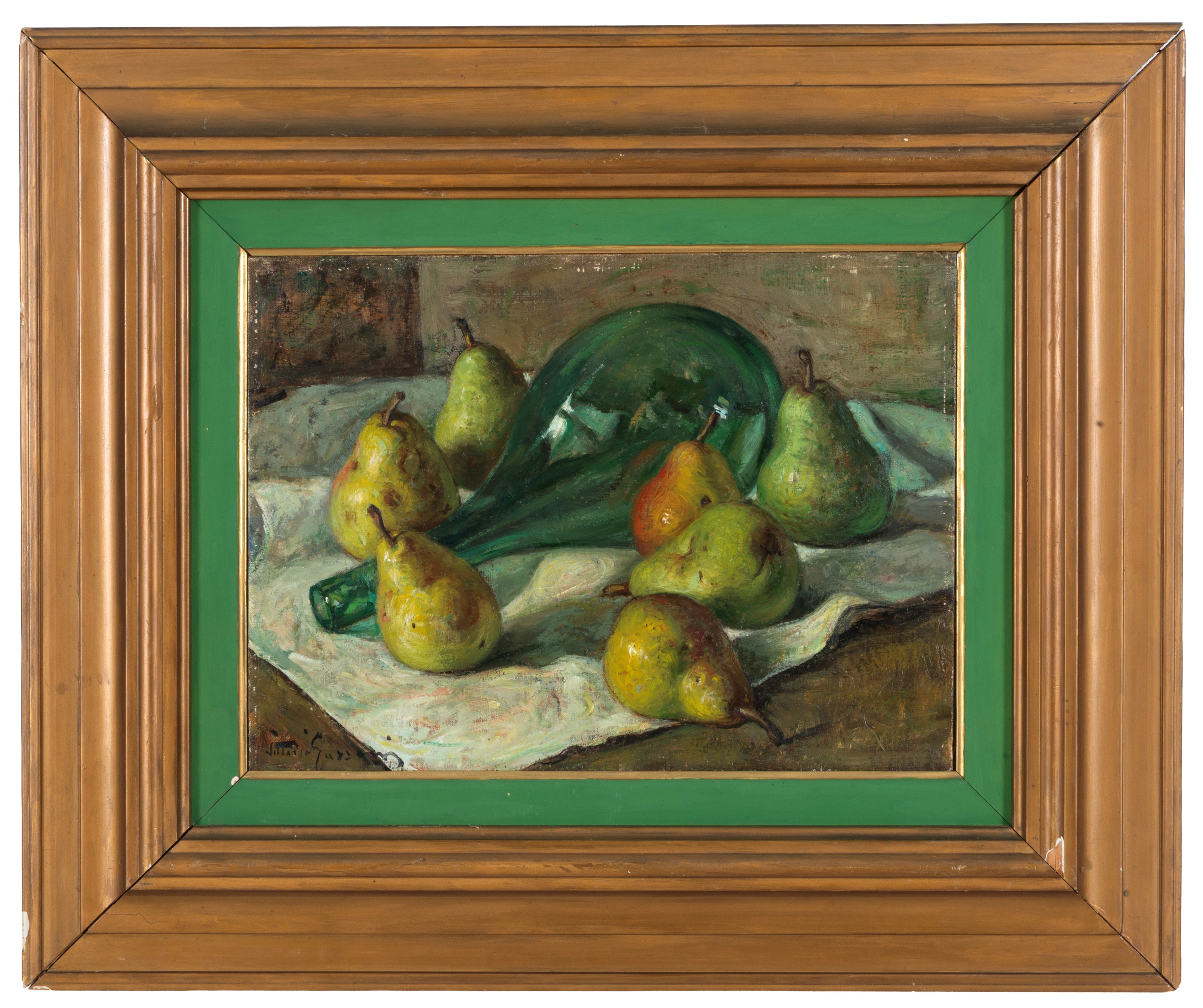 Dipinto olio su tela applicata su cartone raffigurante "NATURA MORTA". Firmato in basso a sinistra. In cornice. Difetti.