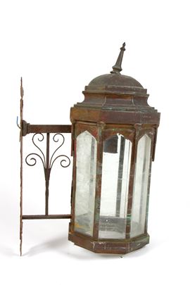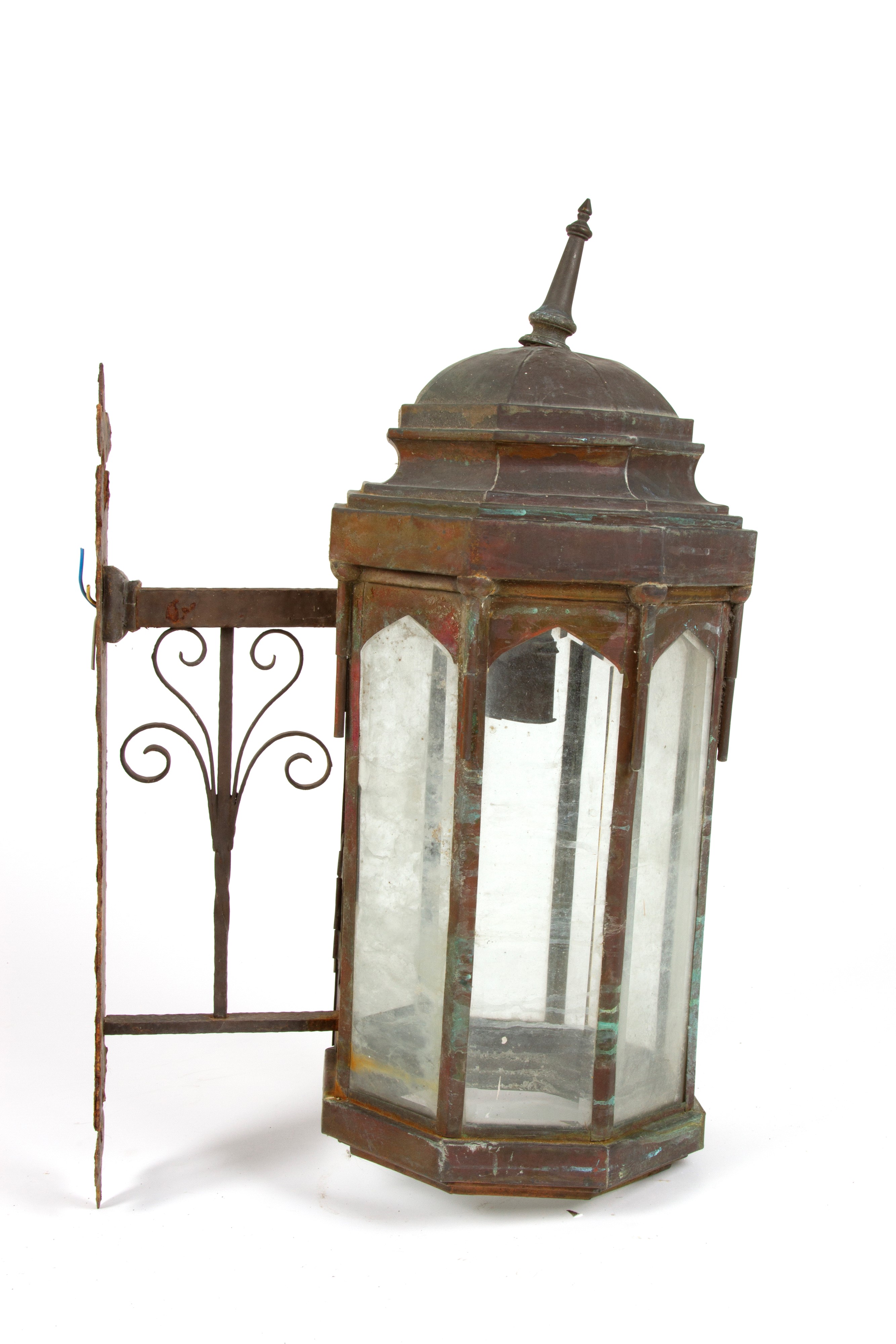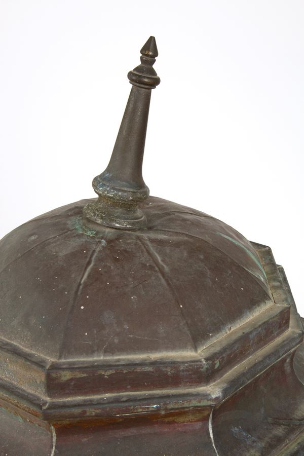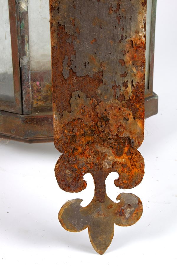 Lanterna ottagonale da muro in rame e vetro. Fine XIX - inizi XX secolo. Difetti.