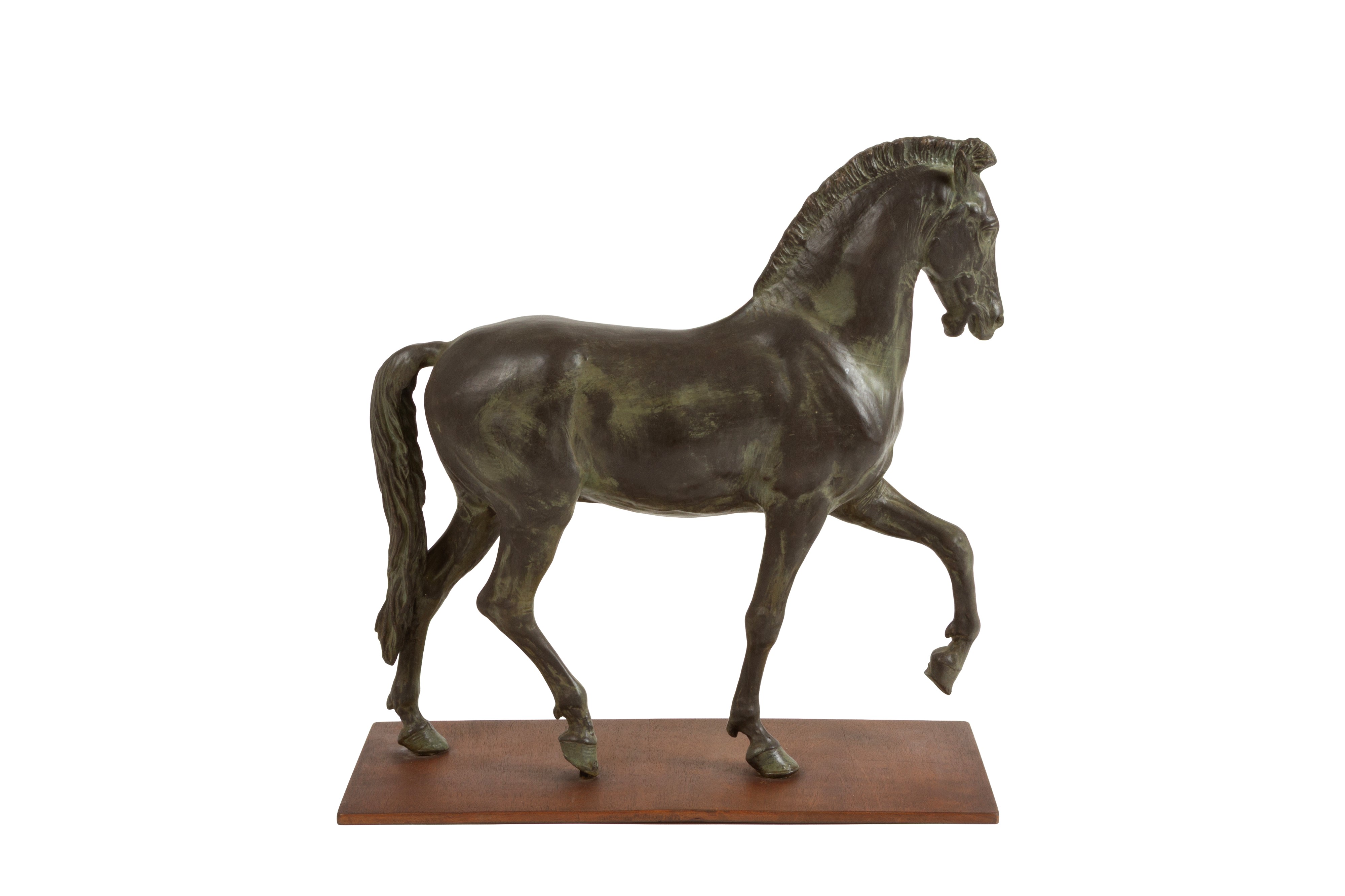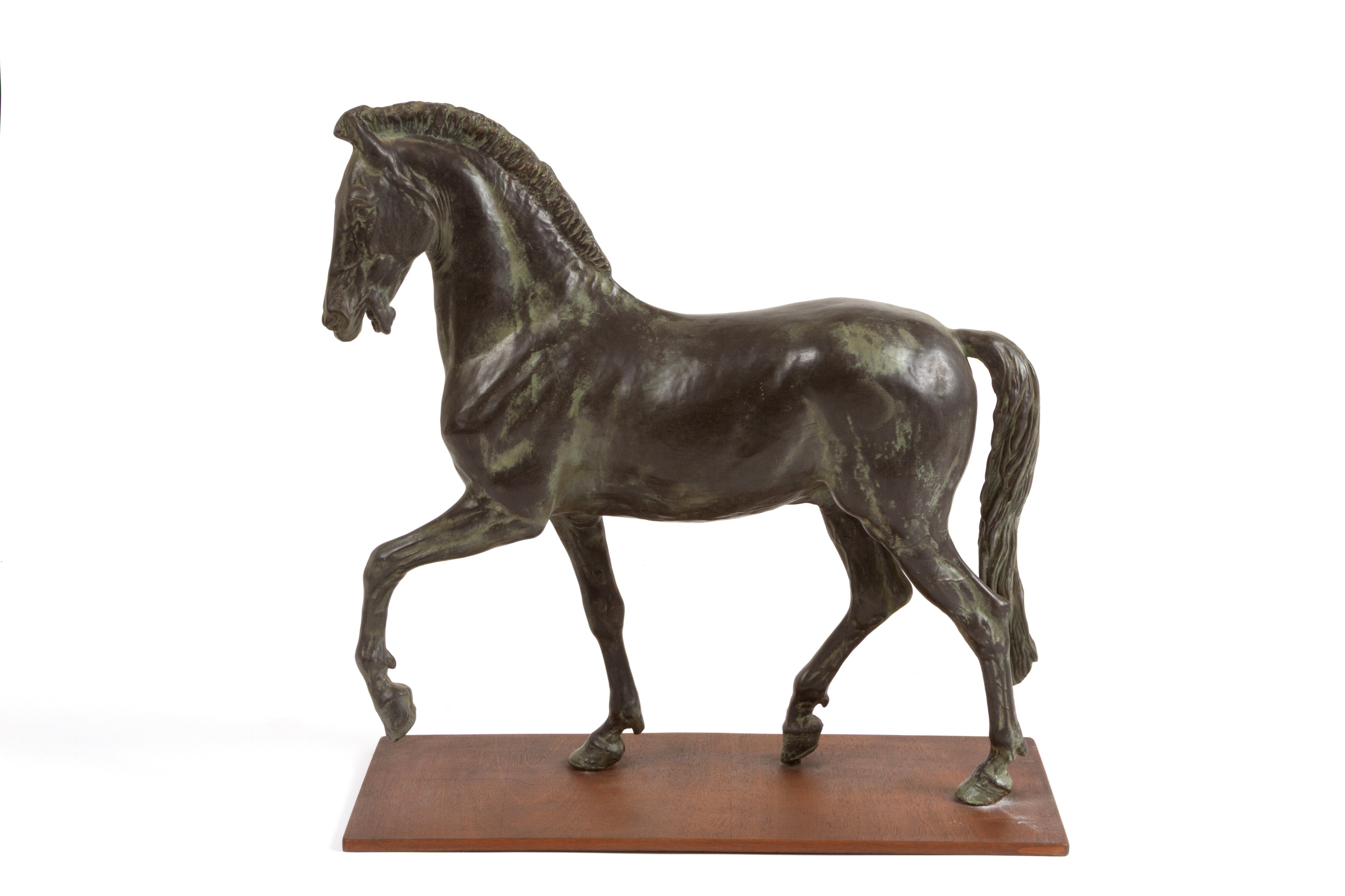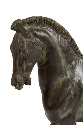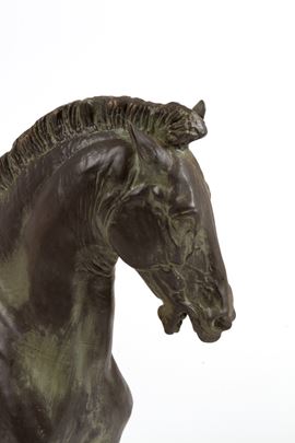 Scultura in metallo patinato raffigurante "CAVALLO". XX secolo.