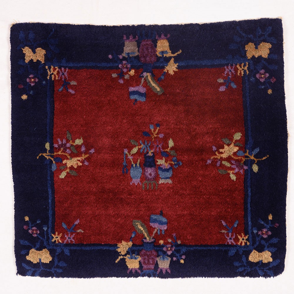 Tappeto Pechino seat mat. Cina. Circa 1900. Perfetto stato di conservazione, full pile.