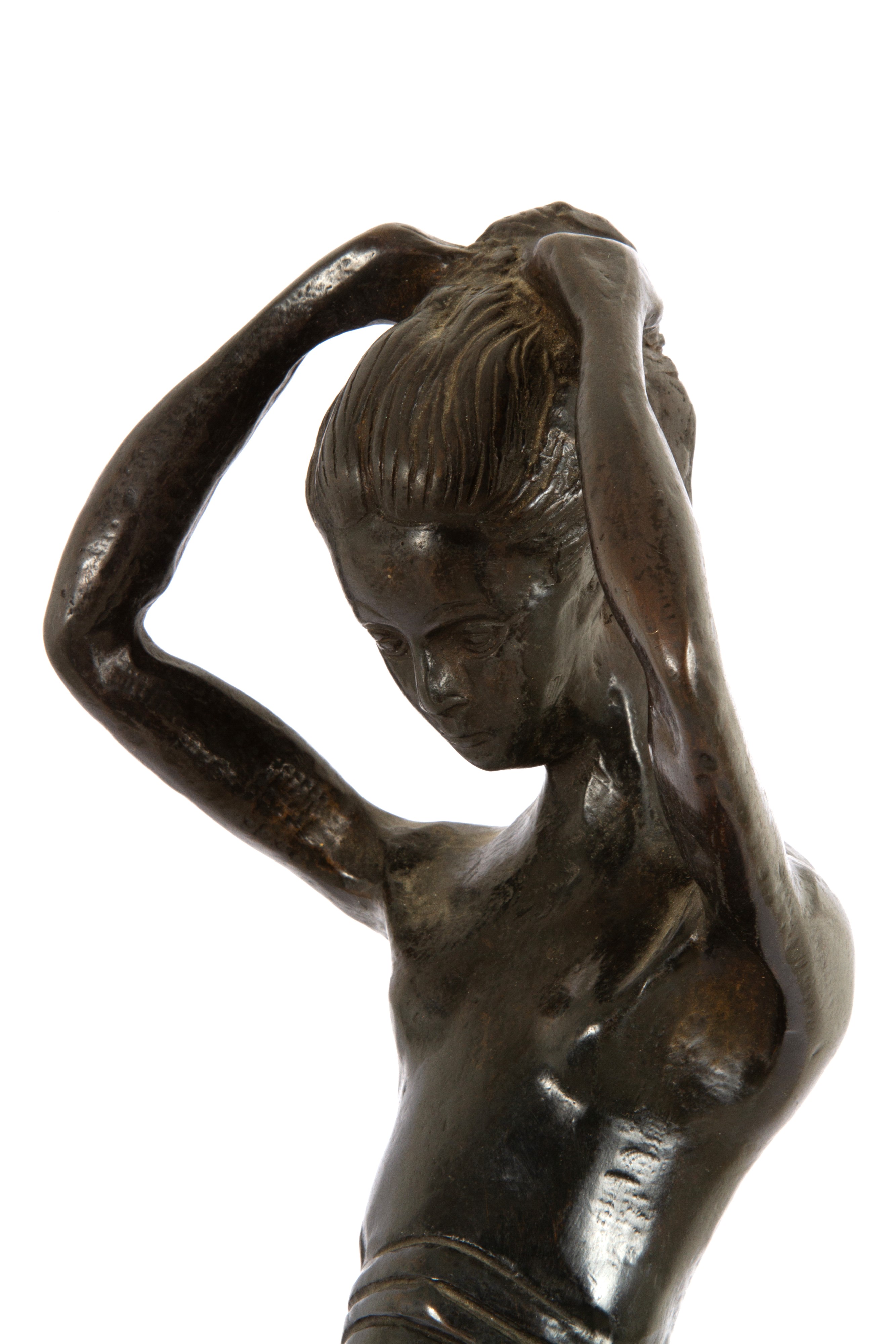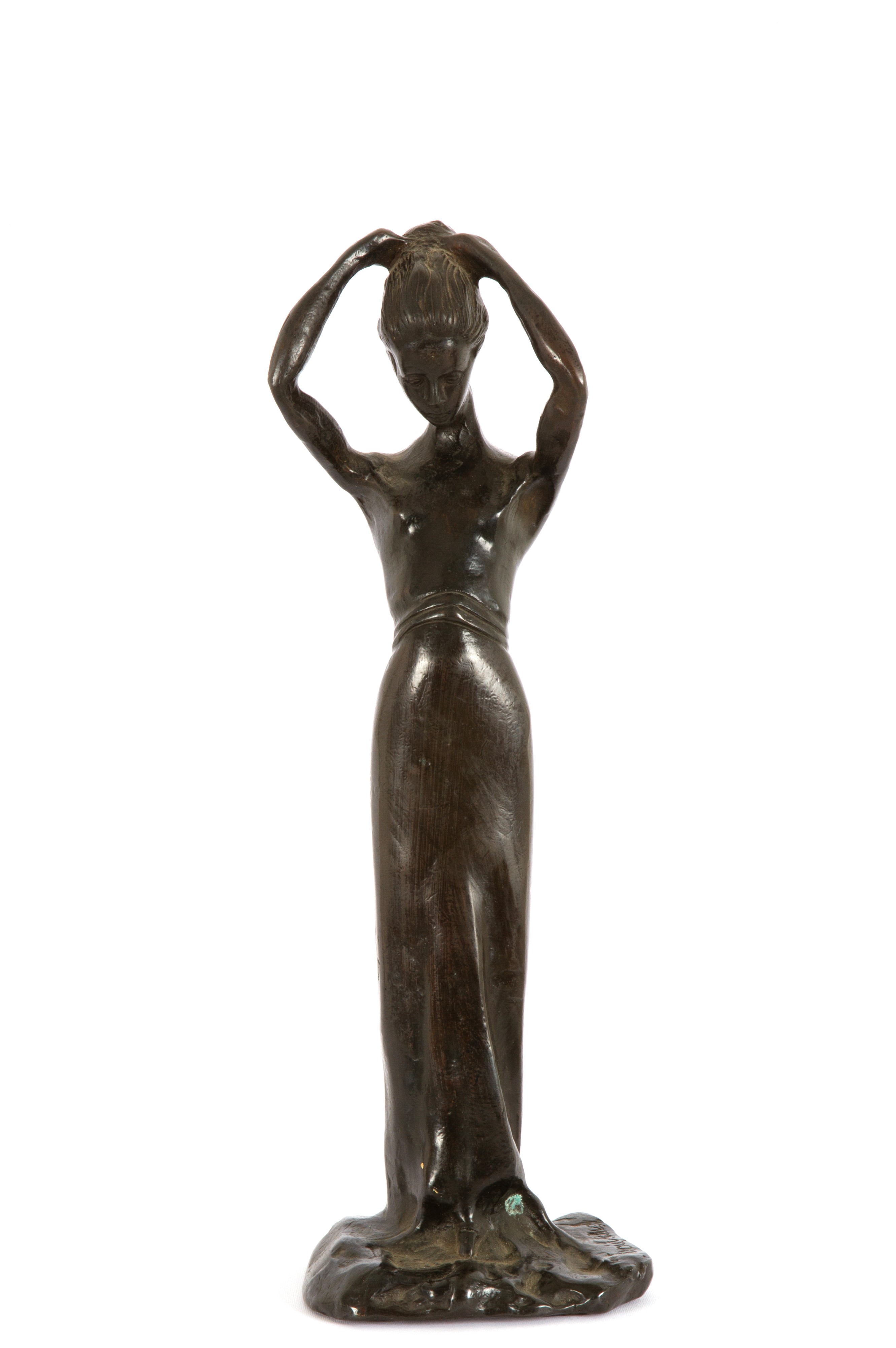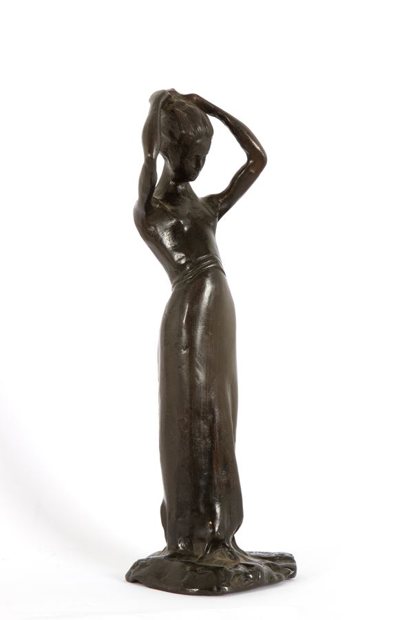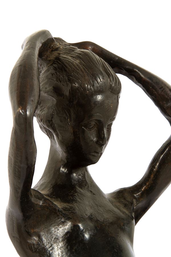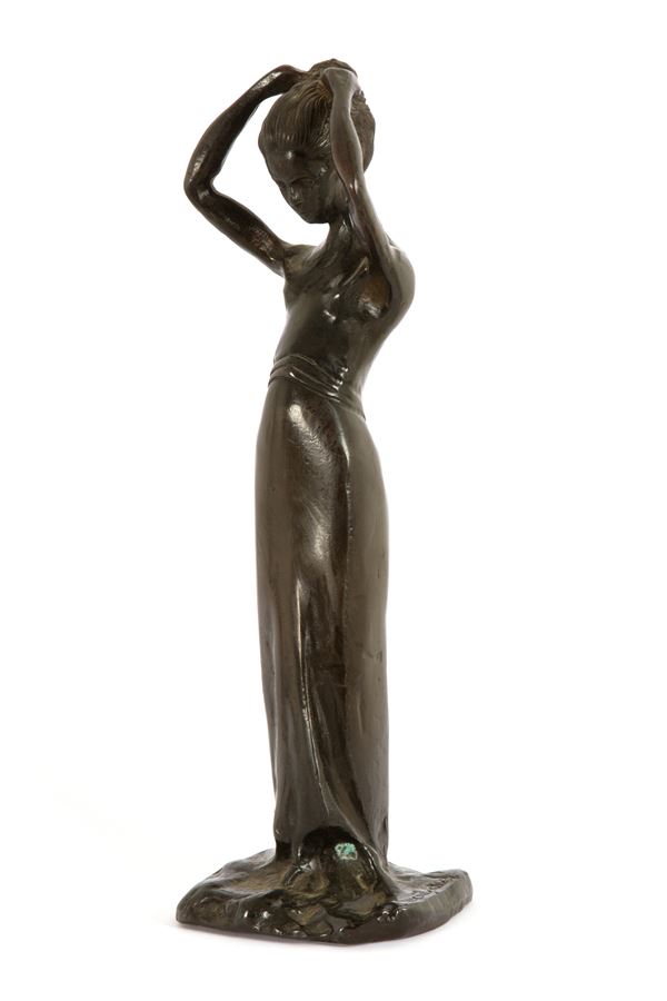 Scultura in bronzo patinato intitolata "LA POSA". Firmata alla base.