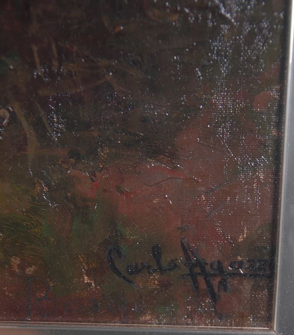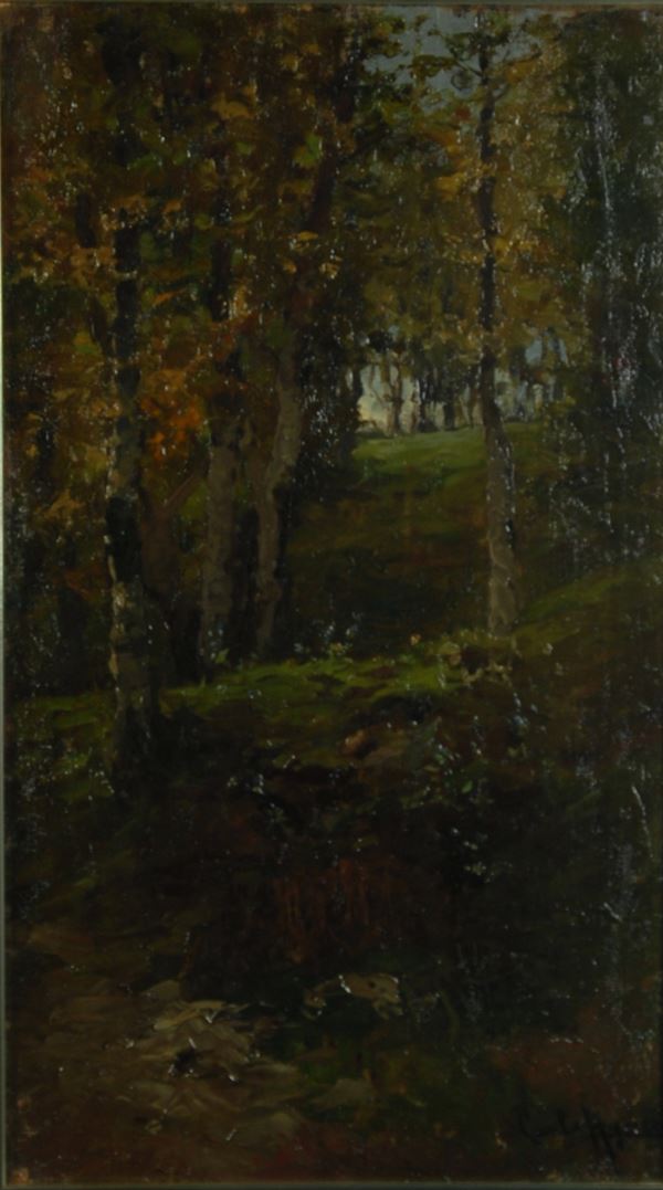 Dipinto olio su tela raffigurante ''BOSCO''. Firmato in basso a destra. In cornice.