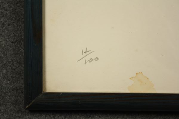 Serigrafia su cartoncino raffigurante ''FANTINO''. Firmata e datata '68 in basso a destra. Esemplare 17/100. In cornice.