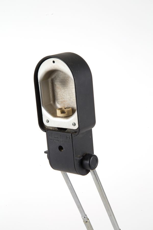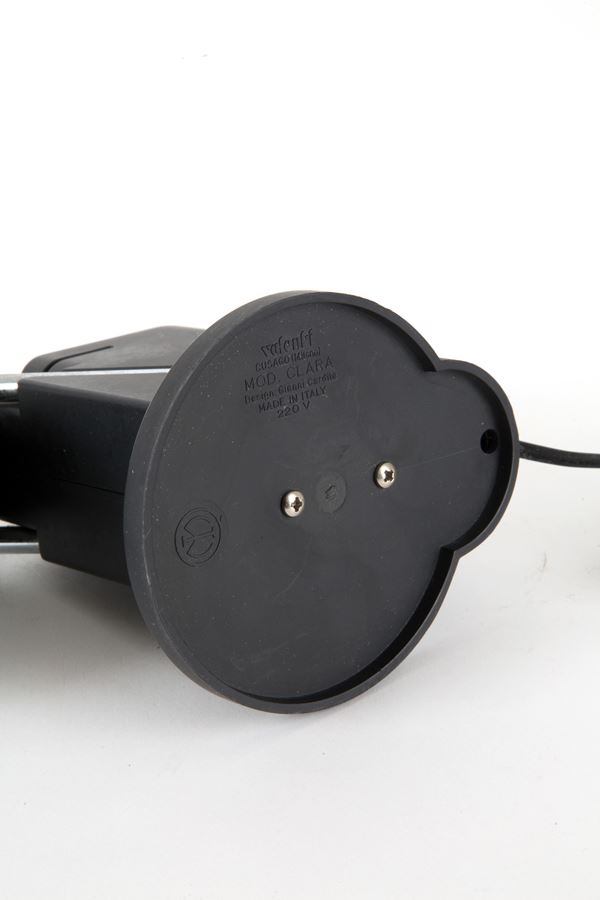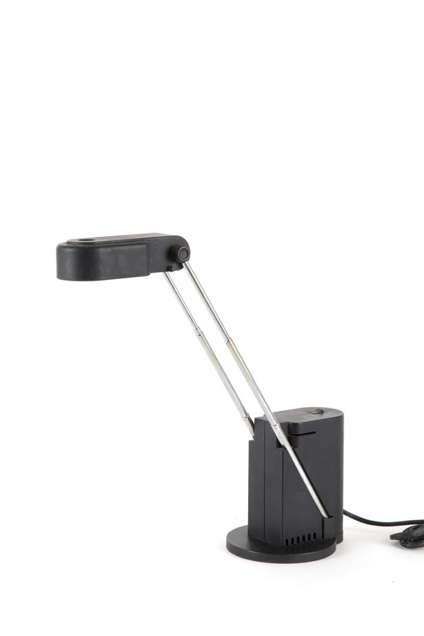 Lampada da tavolo modello Clara in metallo e materiale plastico con meccanismo telescopico. Produzione VALENTI, Cusago (MI). Marcata sul fondo. Anni '70.
