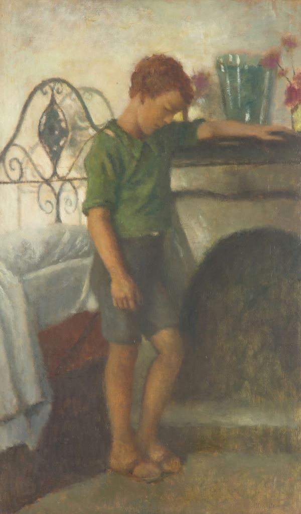 Dipinto olio su tavola raffigurante "BAMBINO". Firma non identificata in basso a destra. XX secolo. In cornice.