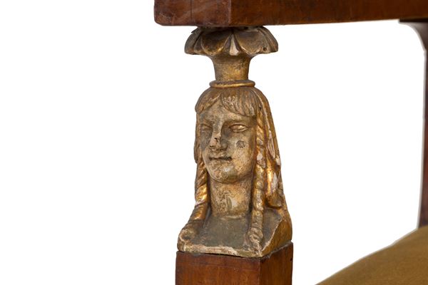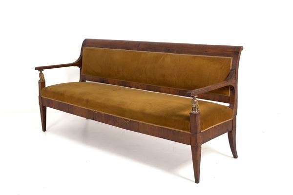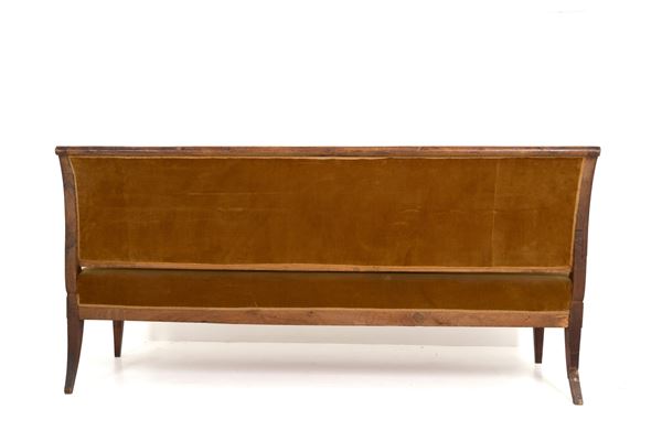 Divano in noce con parti dorate. Inizi XIX secolo. Lievi difetti.