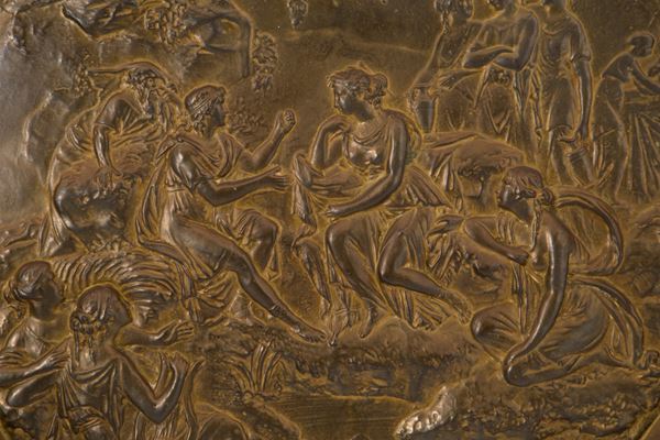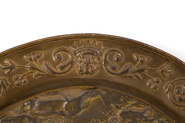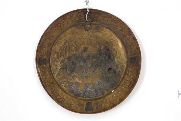 Elemosiniere in ottone sbalzato e dorato. XIX secolo.