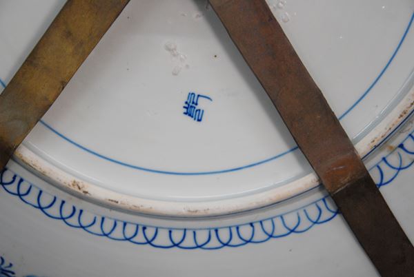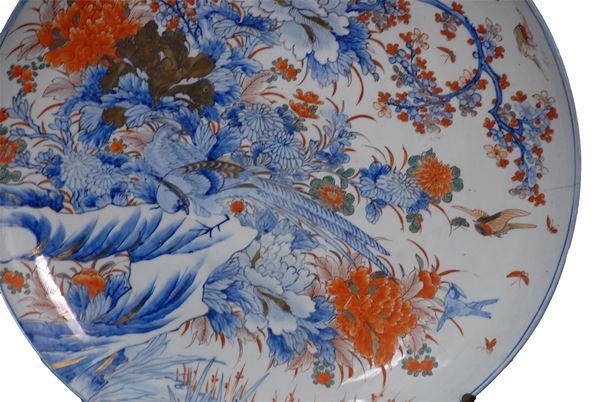 Piatto in porcellana policroma lumeggiata in oro. Giappone. Inizi XX secolo. Piccola felatura sul bordo.