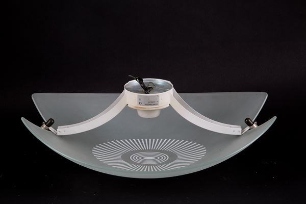 Plafoniera modello Coccinella in vetro satinato. Produzione TRONCONI. Firma del produttore sul lato.