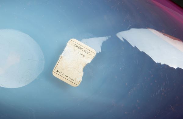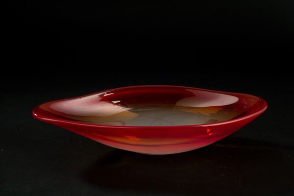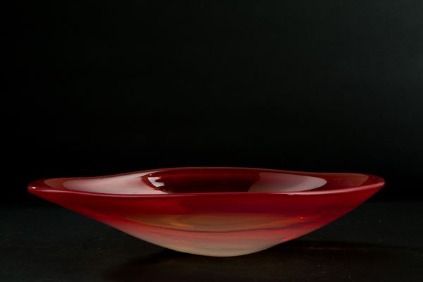 Centrotavola in vetro sommerso nelle sfumature del rosso. Produzione CENEDESE. Con etichetta del produttore. Anni '50.
