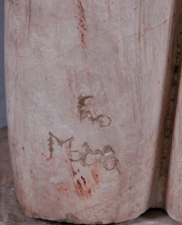 Scultura in pietra raffigurante ''SOGGETTO INFORMALE''. Firmata PINO MAJORCA in basso a sinistra. Base in pietra. XX secolo. Alt. cm. 107 con base.