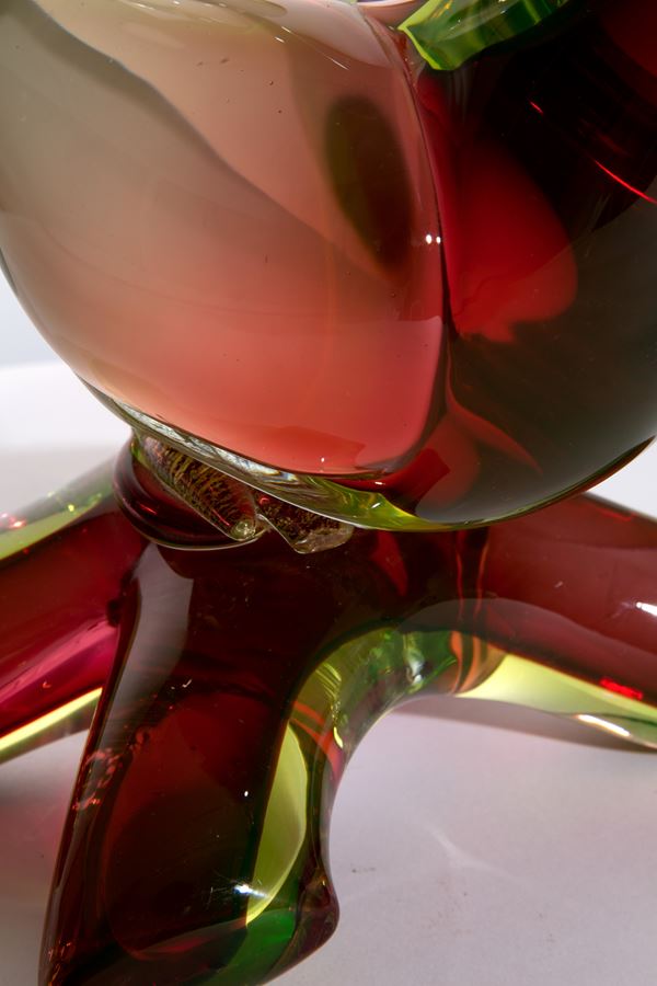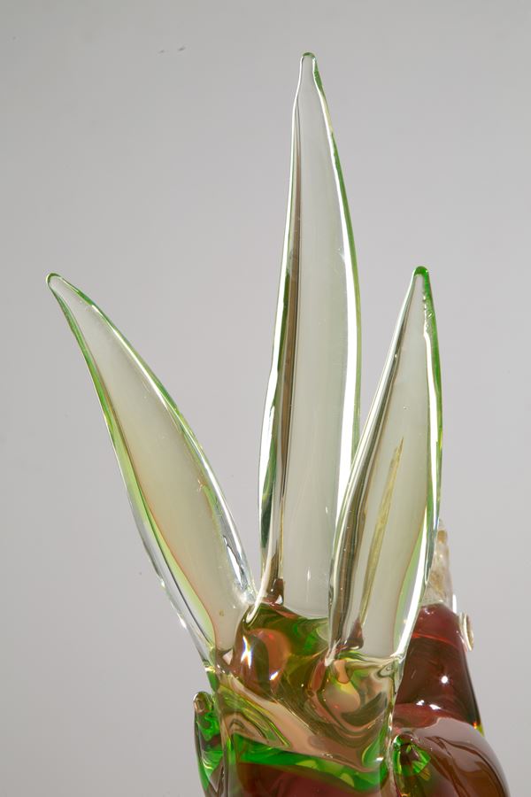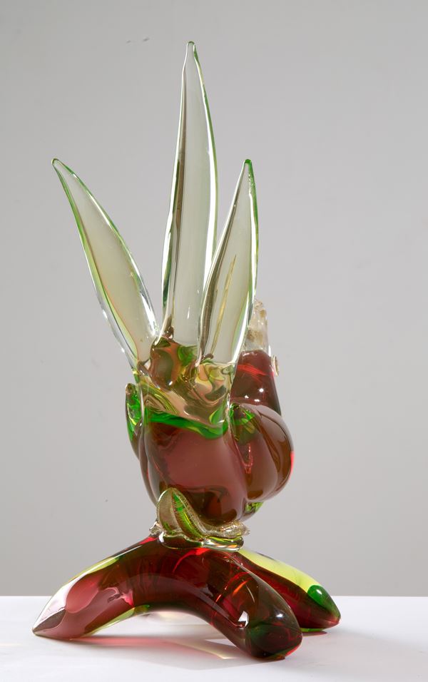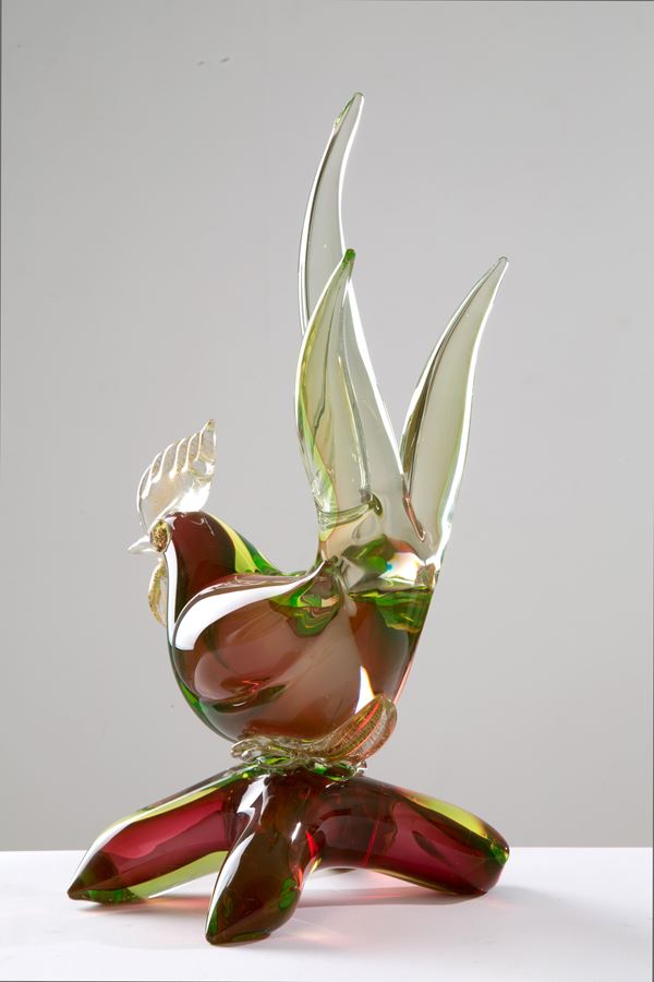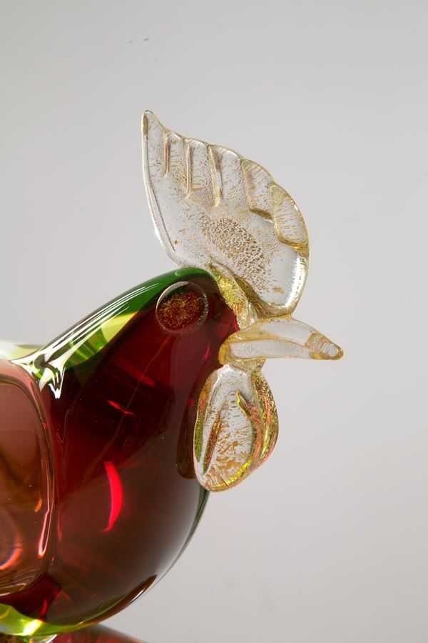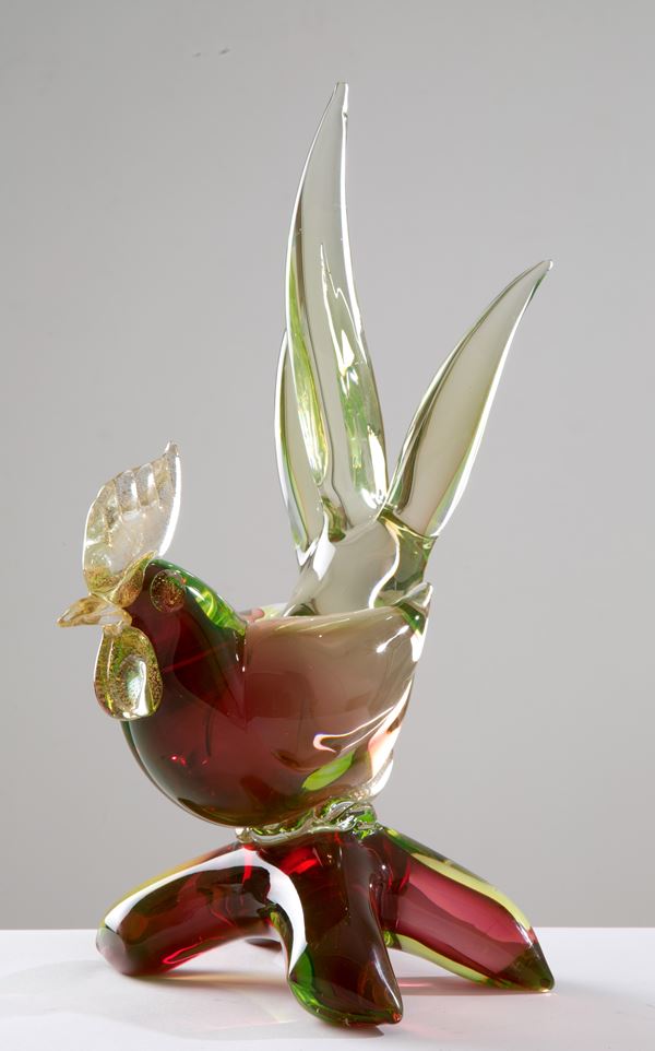 Scultura in pasta di vetro di Murano raffigurante "GALLO". XX secolo.