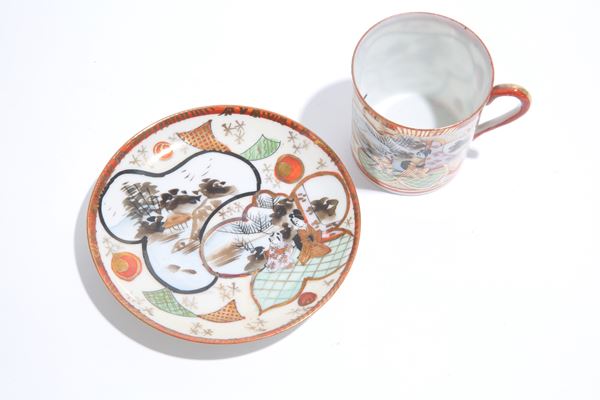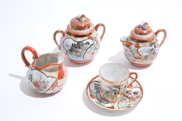 Dettaglicomposto da caffettiera, lattiera, zuccheriera, bricchetto, dodici tazzine e dodici piattini