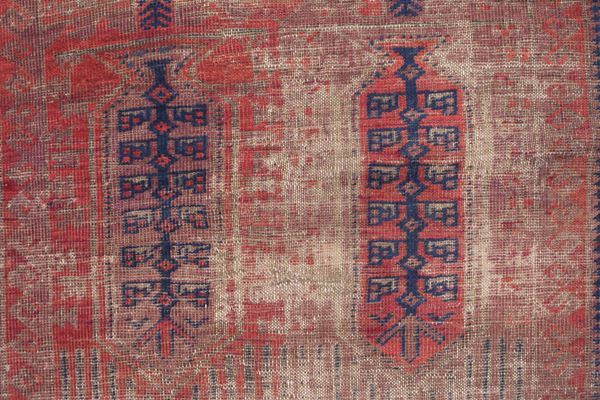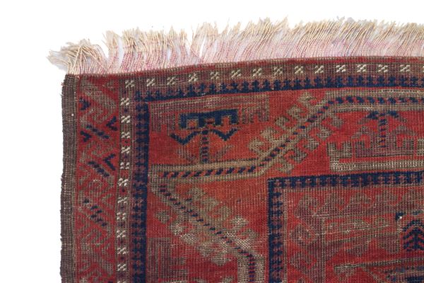 Tappeto Baluch. Persia. Circa 1900. Aree consumate, ossidazione naturale dei colori, mancanze nelle testate.