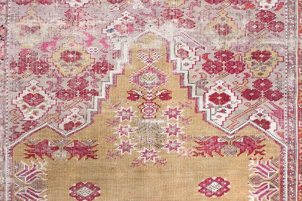 Tappeto Ghiordes a preghiera. Anatolia. Metà XIX secolo. Segni di usura e corrosione naturale dei colori.