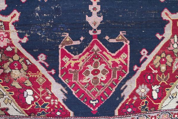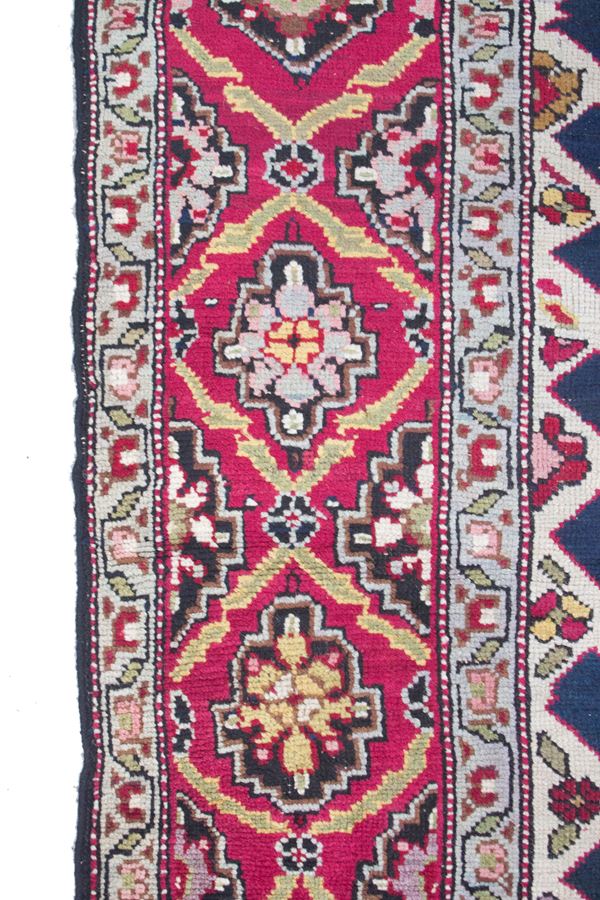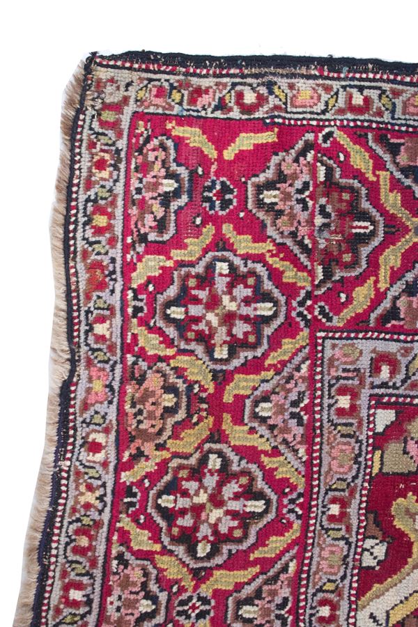 Tappeto Karabagh. Caucaso. Circa 1900. Buono stato di conservazione, piccoli restauri sul campo. Date le dimensioni del tappeto, la foto principale è frutto dell'unione di più scatti.