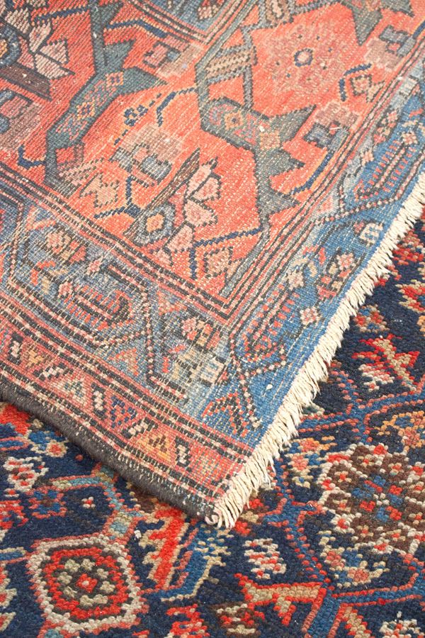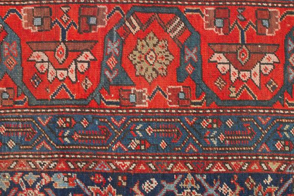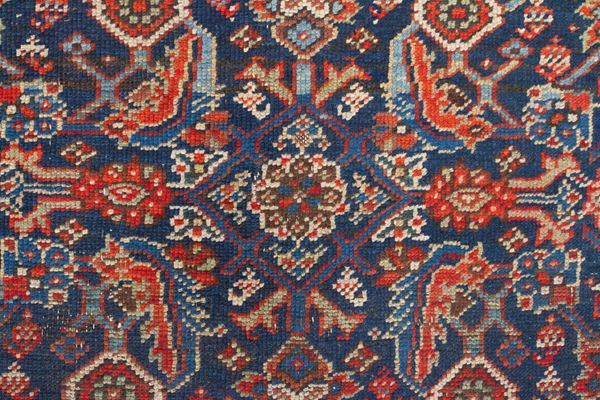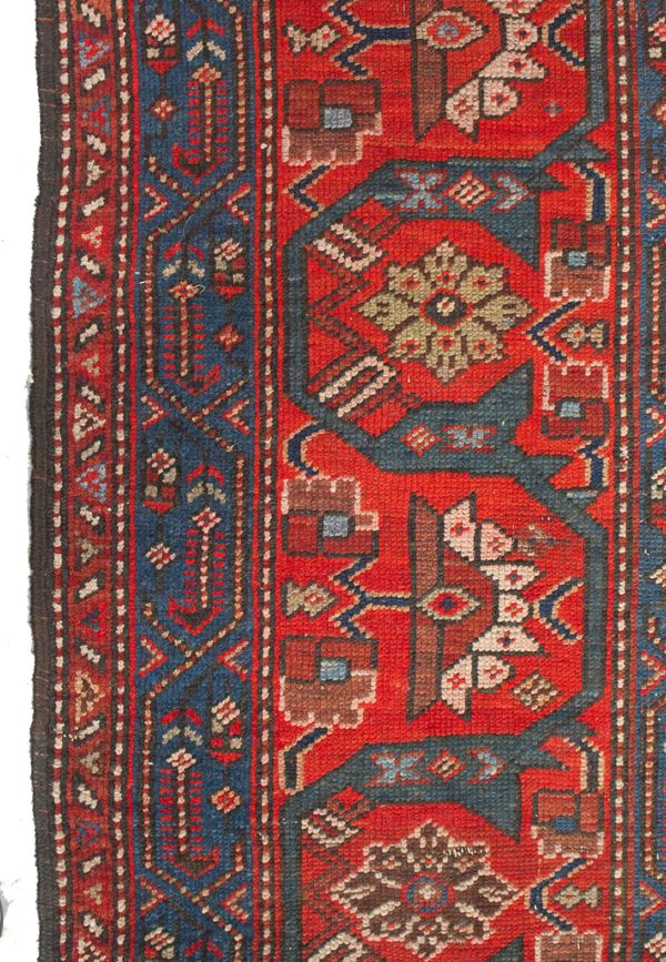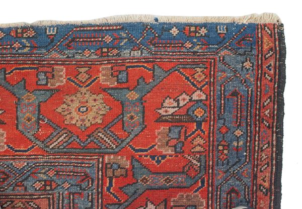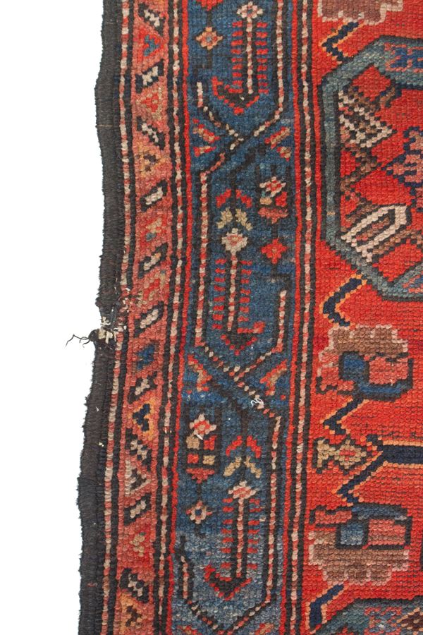 Tappeto Malayer Keley. Persia. Fine XIX secolo. Segni di usura sul campo, mancanze nelle testate, bordi originali.