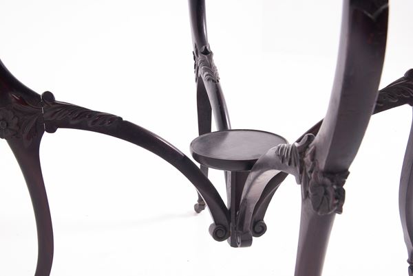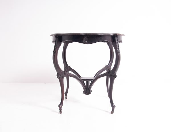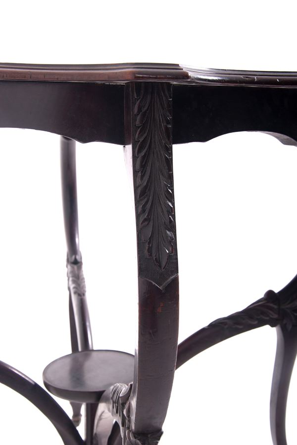 Tavolino in mogano con piano polilobato e gambe mosse con intagli. Inghilterra. Fine XIX secolo.