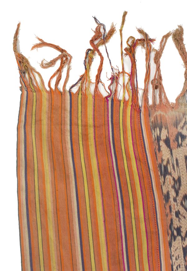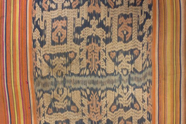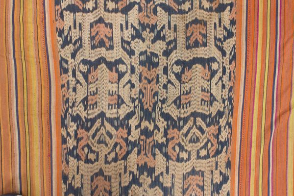 Tessuto Ikat Timor. Indonesia. XX secolo. Eccellente stato di conservazione. Testate e bordi originali, senza restauri.
