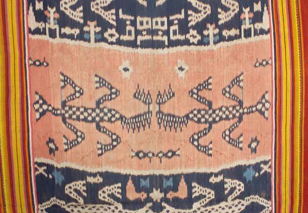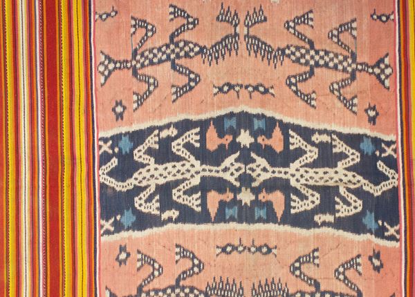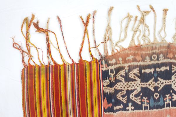 Tessuto Ikat Timor. Indonesia. XX secolo. Eccellente stato di conservazione. Testate e bordi originali, senza restauri.