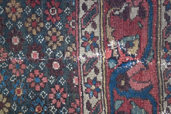 Tappeto Hamedan. Persia. Circa 1900. Usure, da restaurare.