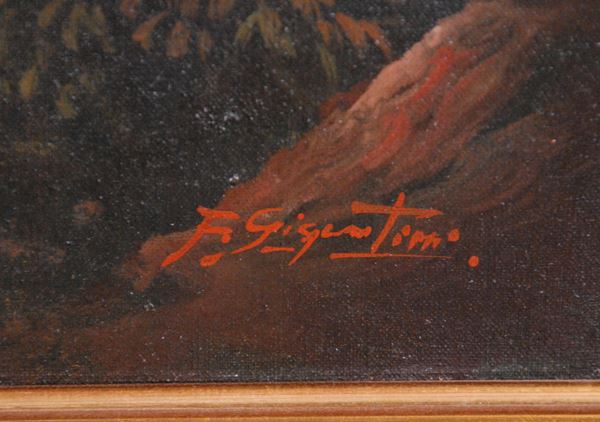 Dipinto olio su tela raffigurante ''VEDUTA COSTIERA''. Firmato F. GIGANTINI in basso a destra. XX secolo. In cornice.