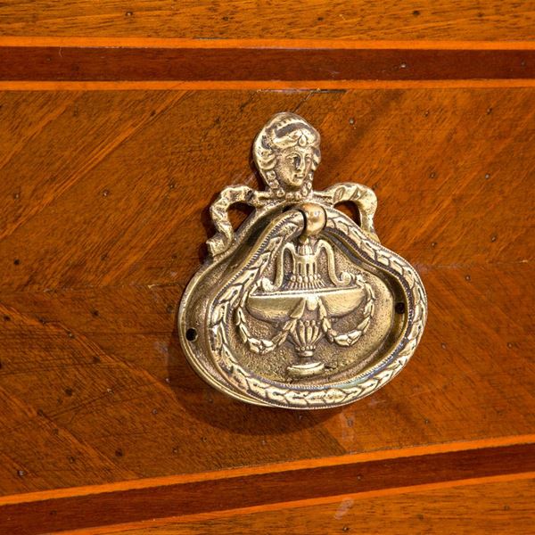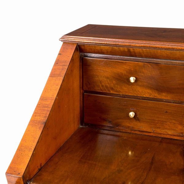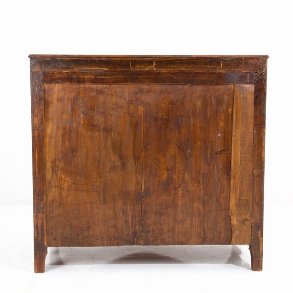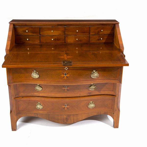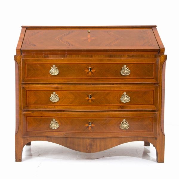 Ribalta lastronata e filettata in legni vari con rosoni a stella e fronte mosso. Liguria. Inizi XIX secolo.