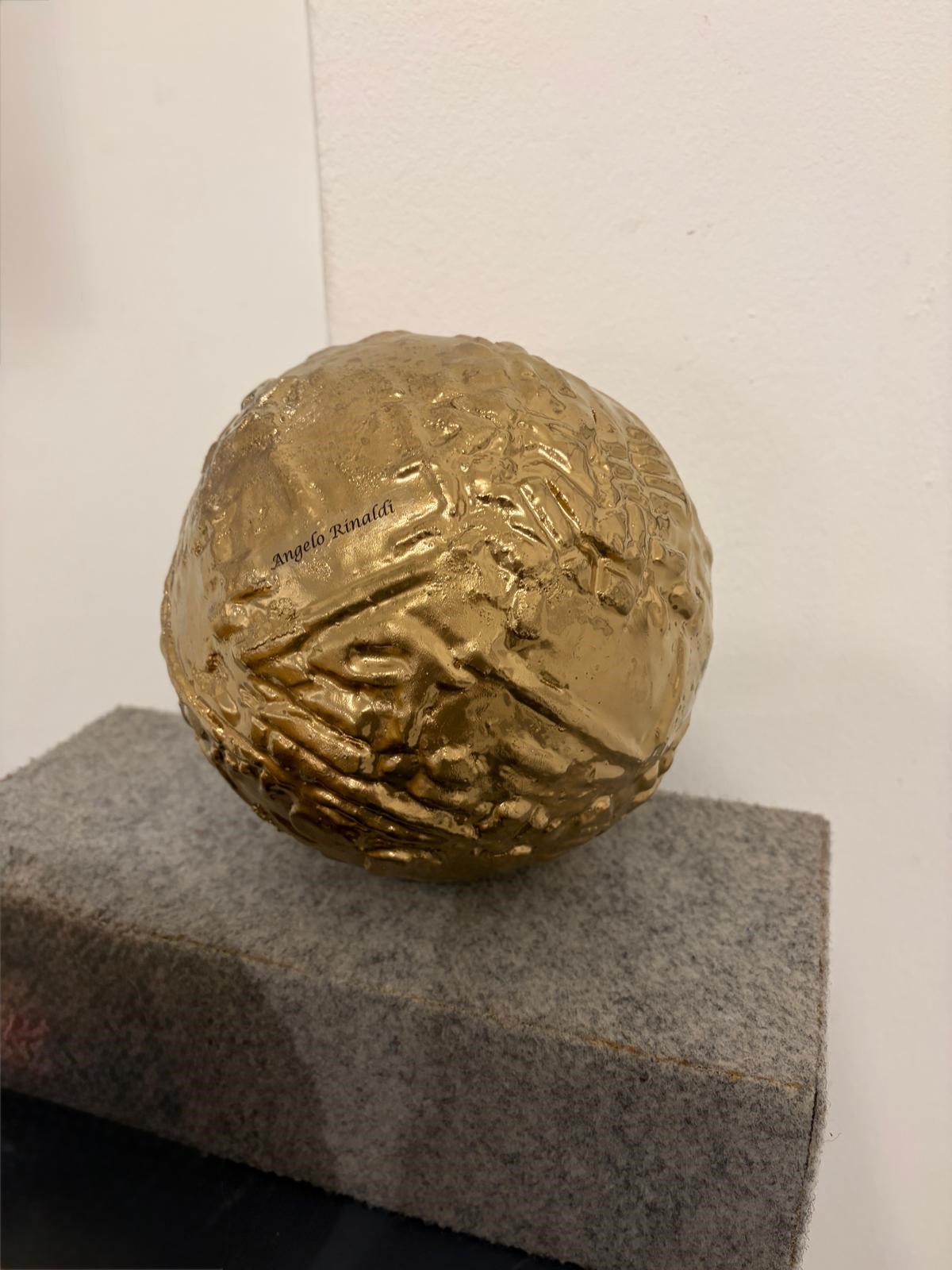 Scultura modello Pianeta in ceramica dorata. 2000.