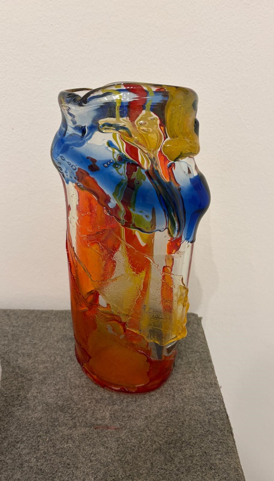 Vaso scultura modello Alghe lagunari in vetro soffiato con vetro policromo in rilievo. 1969.