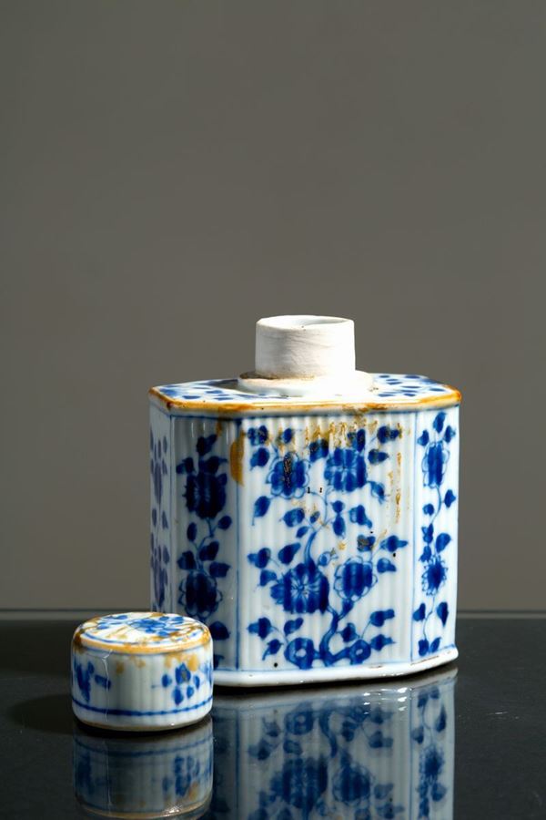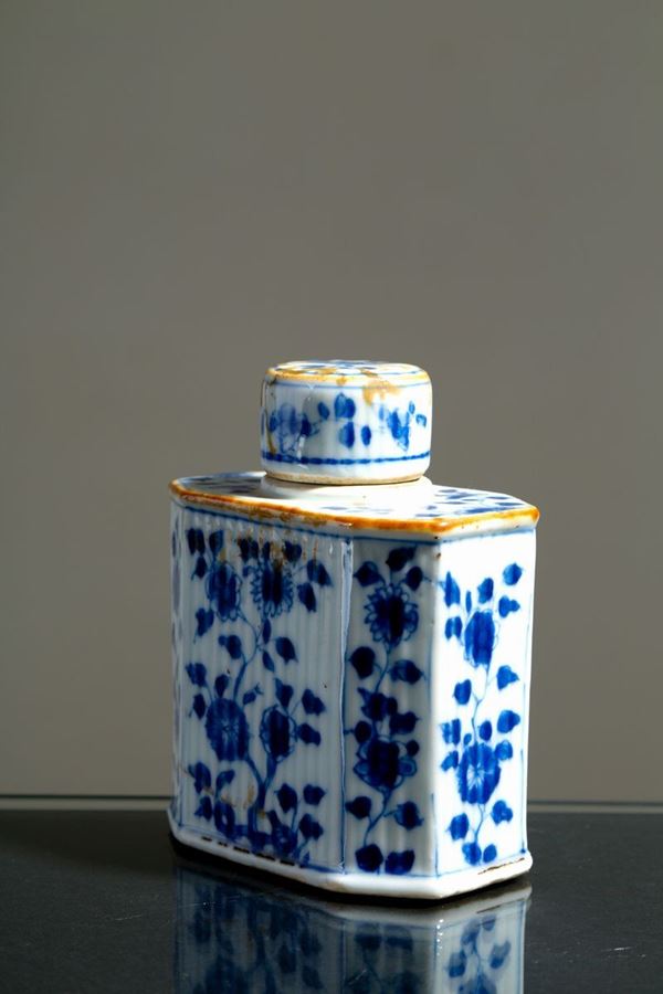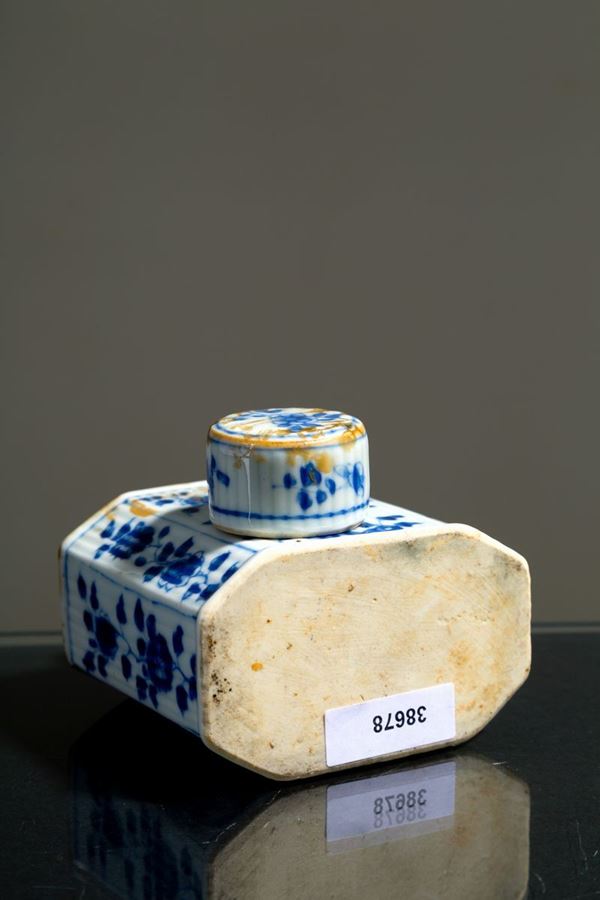 Bottiglietta in porcellana bianca e blu. Cina. XIX secolo.
